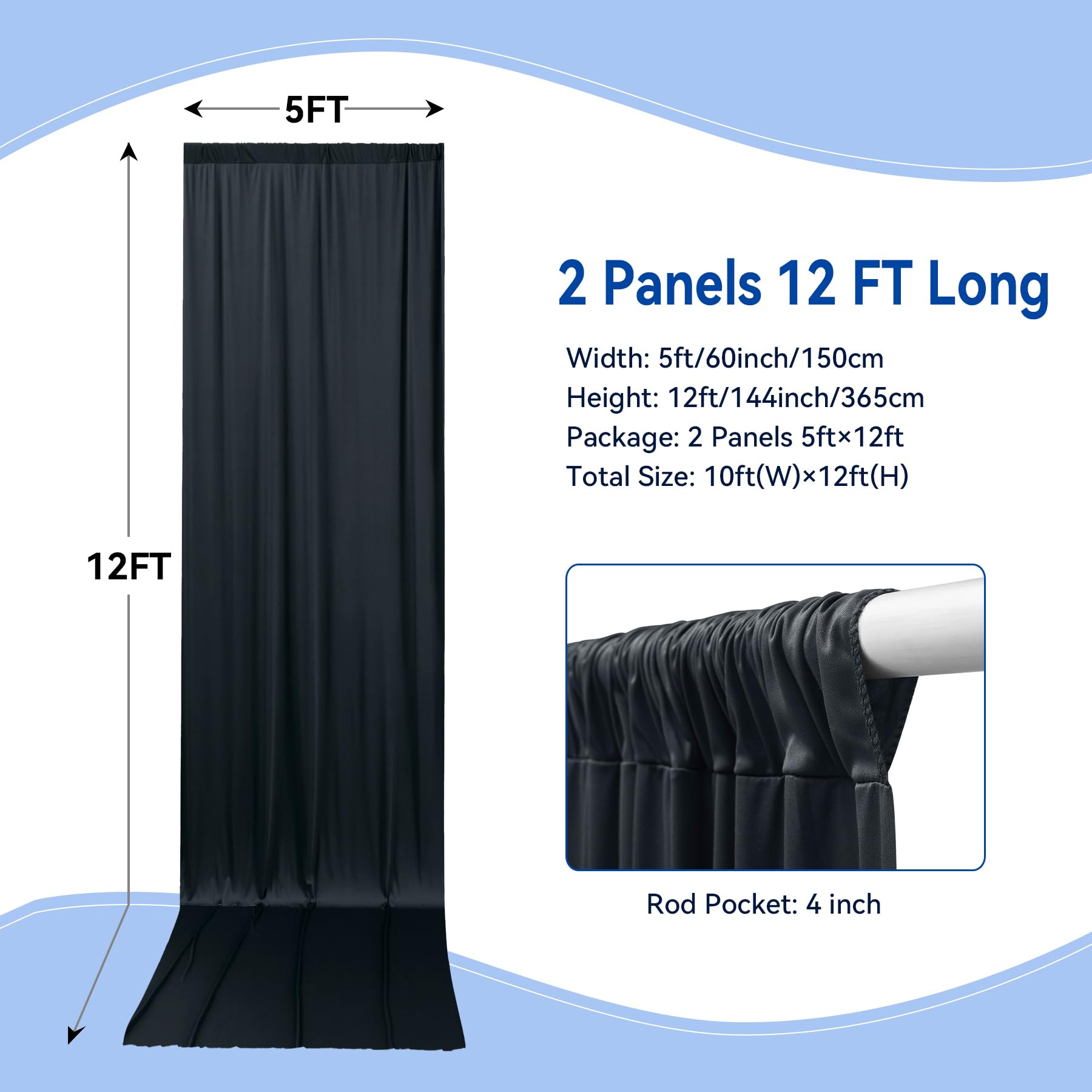 - 【2 Panels Black Drapes for Backdrop 12 ft Long】- The black curtains backdrop is 5ft width and 12ft height, you will get 2 panels black curtain for backdrop, total size is 10ft(width)×12ft(Height) black drapes backdrop, recommended multi-pack if want same feeling as pictures showed.
