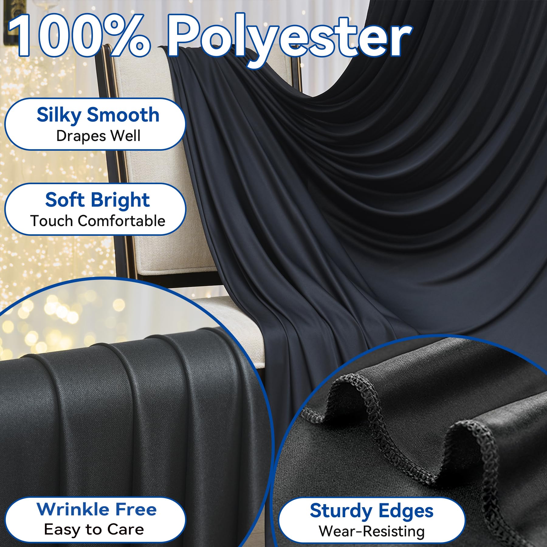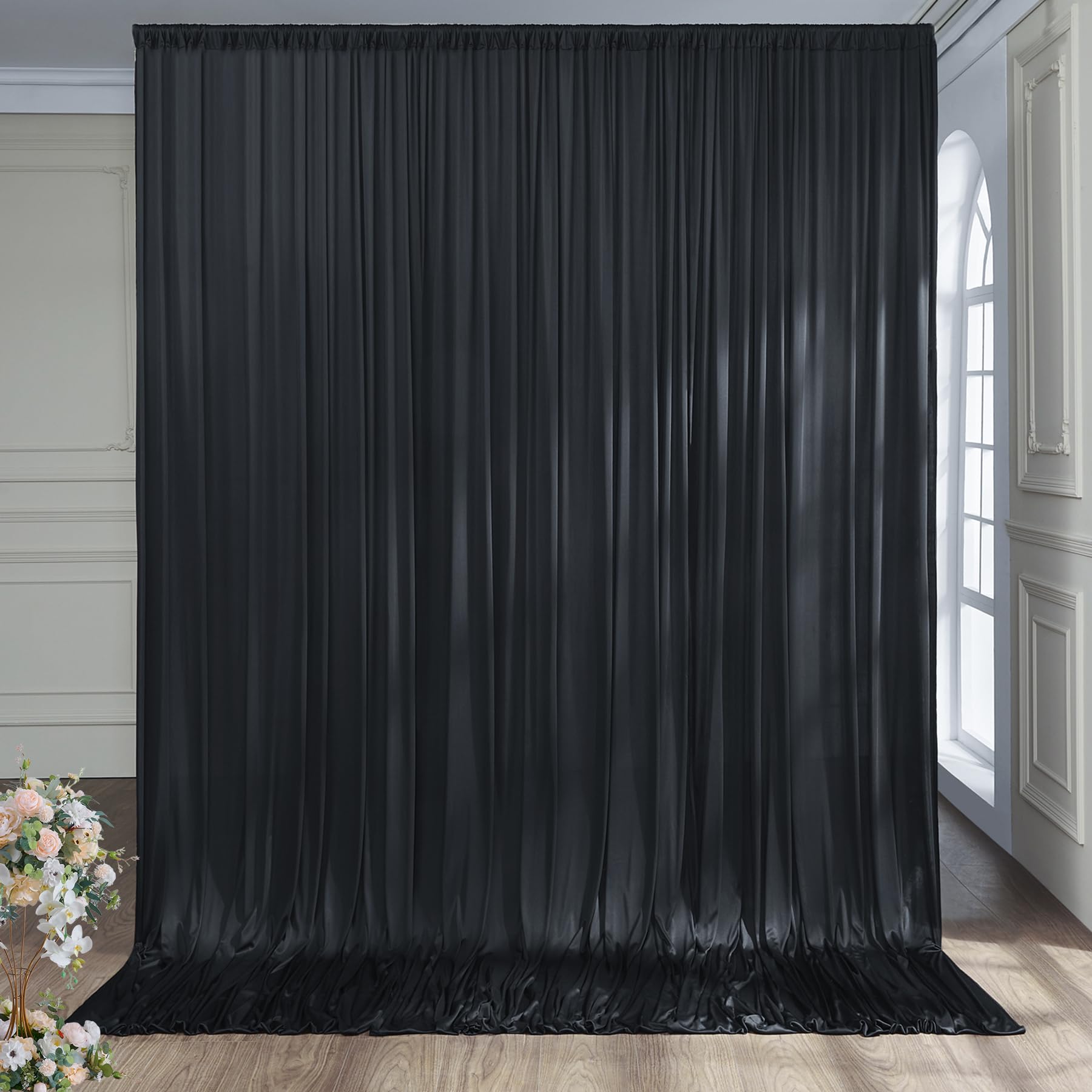 - 【Wrinkle Free, Soft, Silky and Easy to Drape Black Backdrop Curtain】- Made of high quality polyester material, wrinkle free, soft, silky, easy to drape for wedding or parties decoration, not blackout, but very thick compare with tulle or chiffon backdrop curtain.