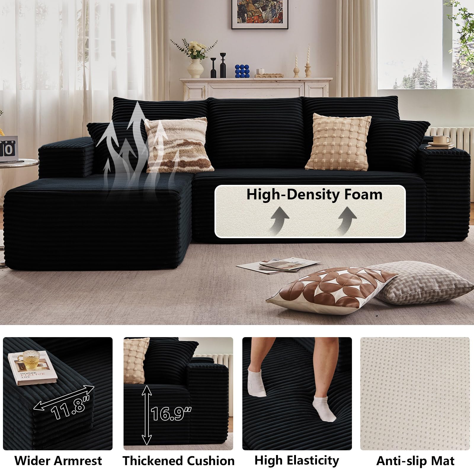 107" Cloud Sectional Couch with L-Shape Chaise, Modern Modular Comfy Sofa with Deep Seat, Upholstered Corduroy Couches Sleeper Chaise Longue for Living Room Bedroom, No Assembly Required, Black
