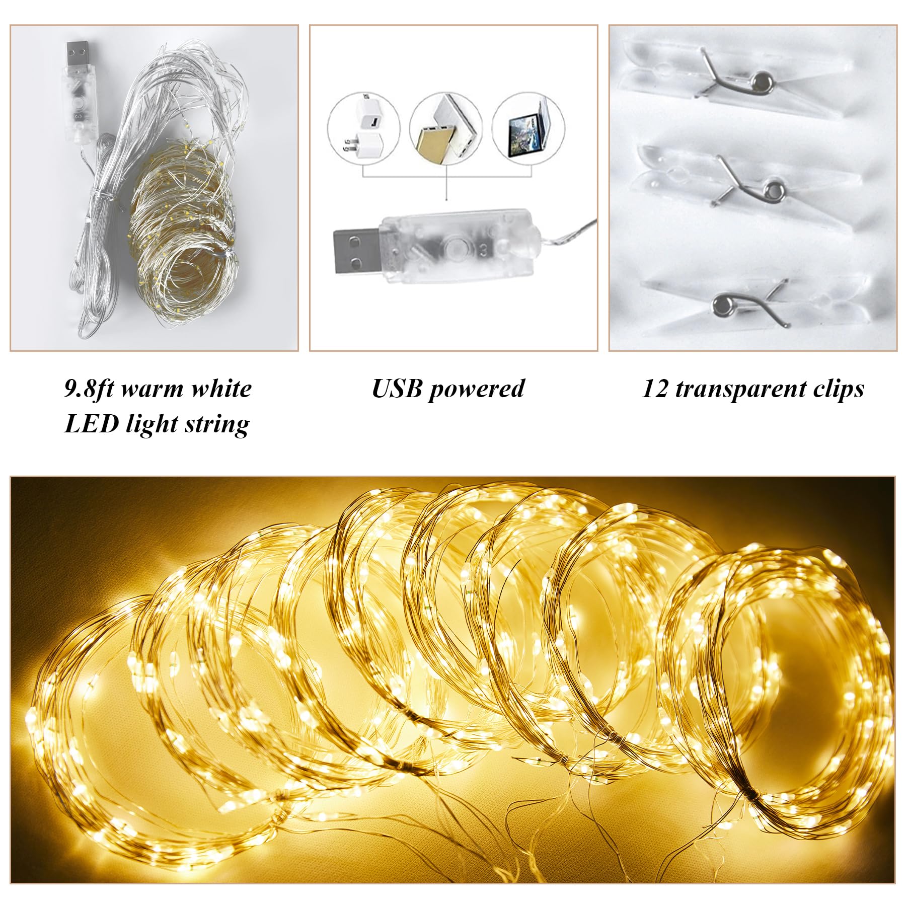 - 【Exquisite String Lights Curtain】Experience 8 mesmerizing lighting modes--[waves, sequential, slogs, chasing/flash, slow fade, twinkle/flash, steady on]. UL-certified and heat-free, safe for kids to touch. You can hang the light string anywhere and use the 12 clips to DIY the shape or effect of the string lights, creating your own unique party style.