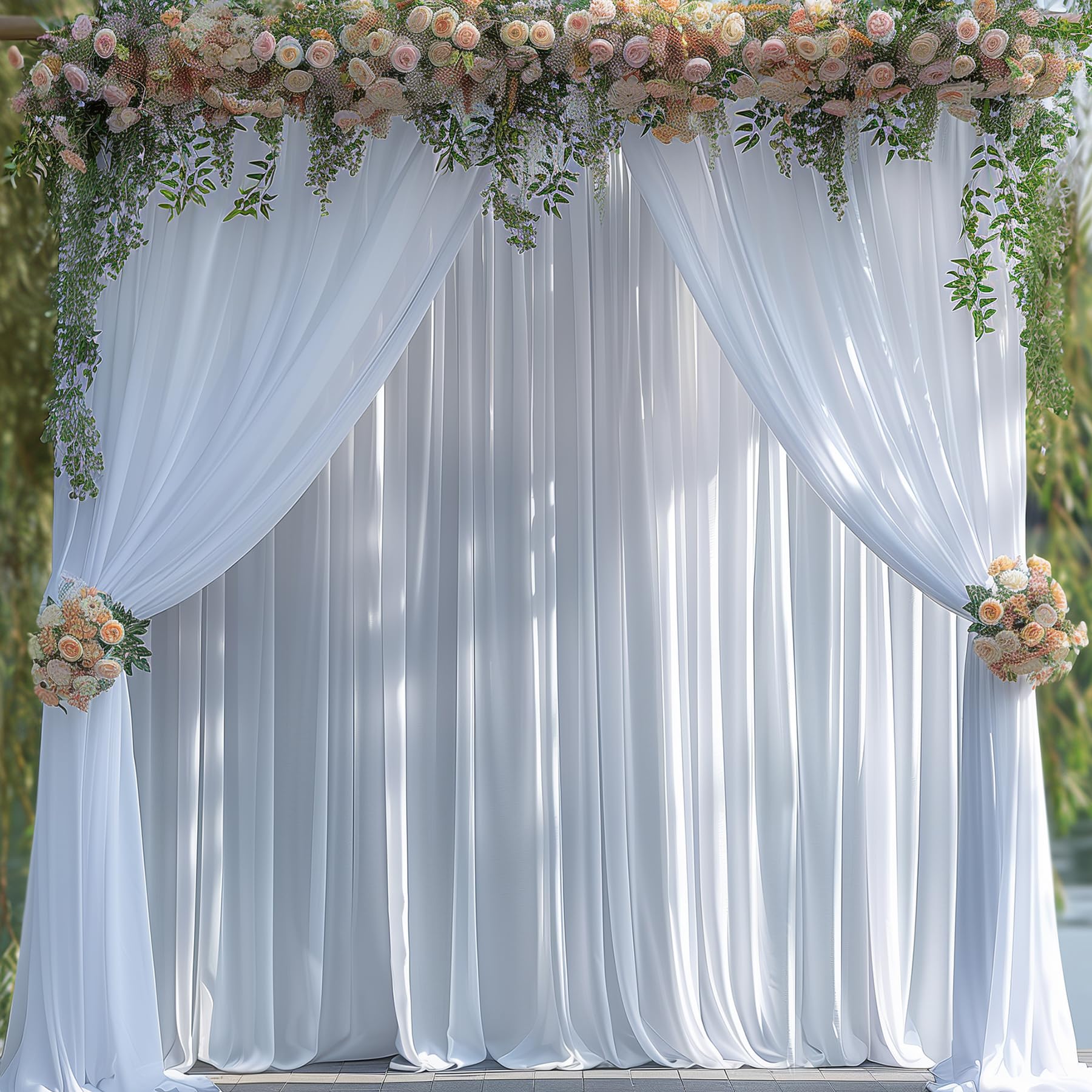 - High-Quality Wrinkle-Free Fabric —— Crafted from premium 100% high-quality polyester fabric, this white wedding backdrop offers a silky smooth texture, and an irresistibly soft touch akin to milk. The backdrop Curtains for wedding droops naturally and the texture is very good, will make your wedding more elegant