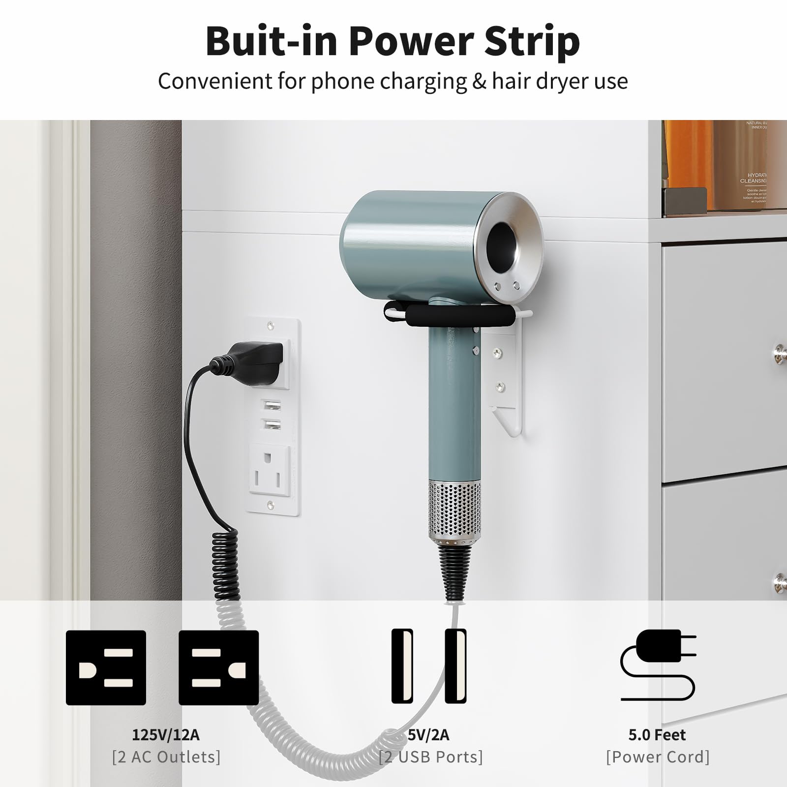 - Built-in Power Station: This vanity desk comes with a hair dryer stand and charging station. Including 2 AC outlets and 2 USB ports, so you can easily charge your phone, tablet, or plug in styling tools like hair dryers and curling irons, no more messy cords!