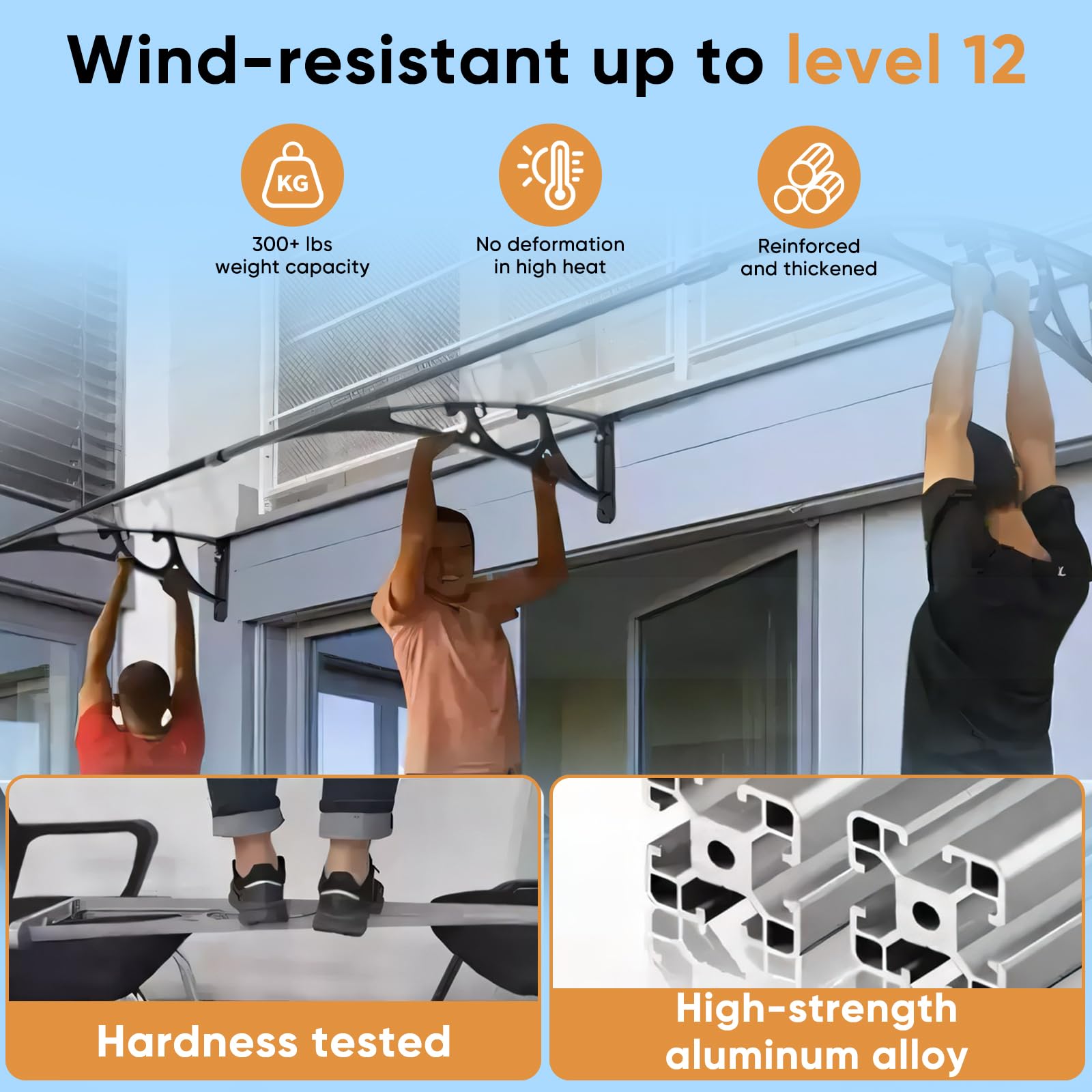 - 【 Modern Aesthetic Design】With a sleek and modern design, this door and window awning features a black aluminum alloy bracket and a clear polycarbonate cover, offering both function and style. It complements any outdoor setting, from porches to patios, enhancing the overall appearance of your home while providing reliable protection.