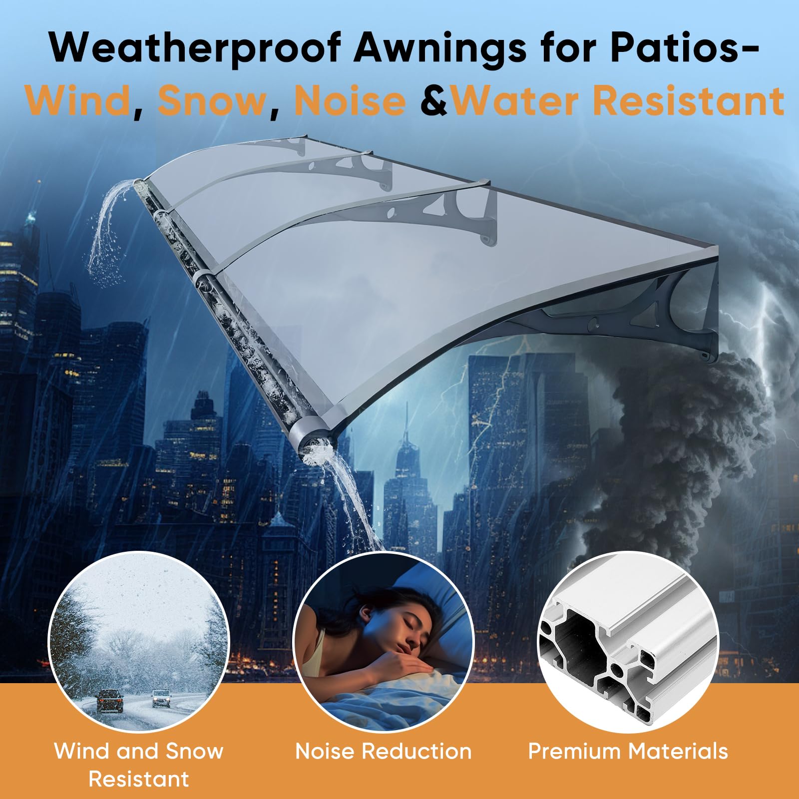 - 【Versatile for Various Outdoor Spaces】Whether you need protection for a porch, patio, terrace, or bedroom window, this awning provides ideal UV, rain, and snow protection. It's perfect for safeguarding doors, windows, and other outdoor areas, meeting a variety of needs.