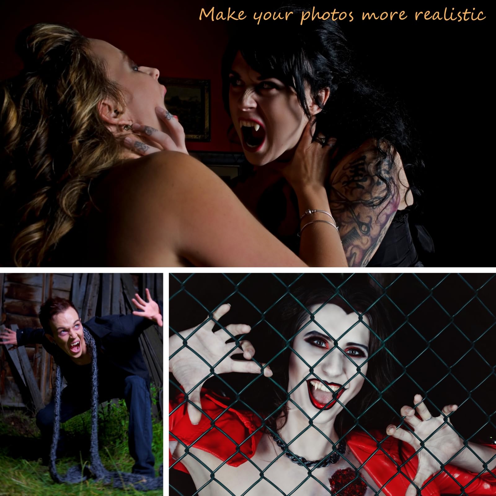 - Ideal Cosplay Accessories: Great for Cosplay,Halloween,Christmas,Carnivals,Masquerade and Fancy Dress Parties. The most real Vampire Teeth Fangs, increase your charm, help you to be the focus in the party.