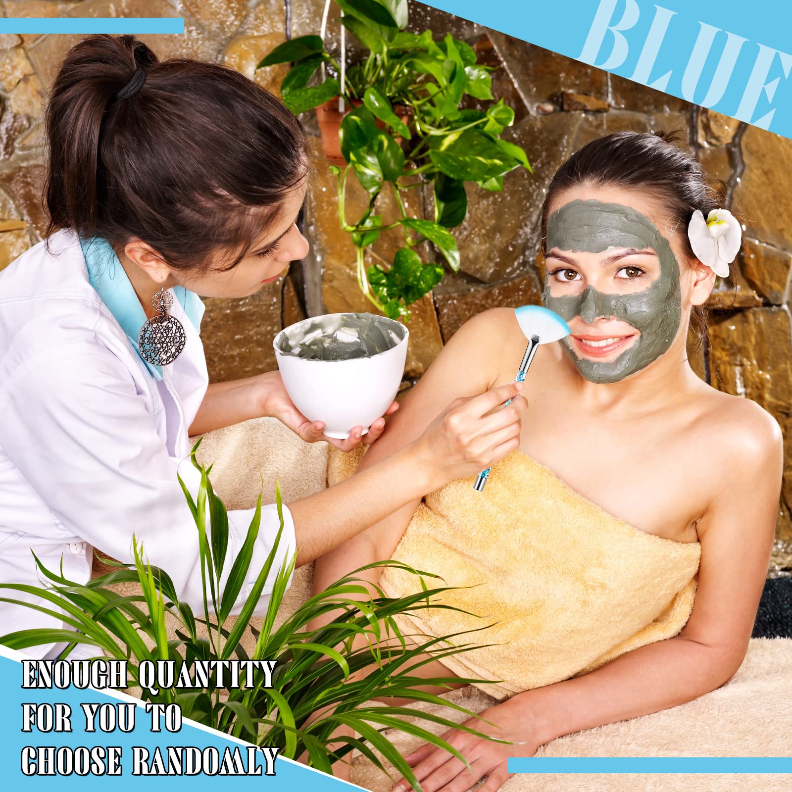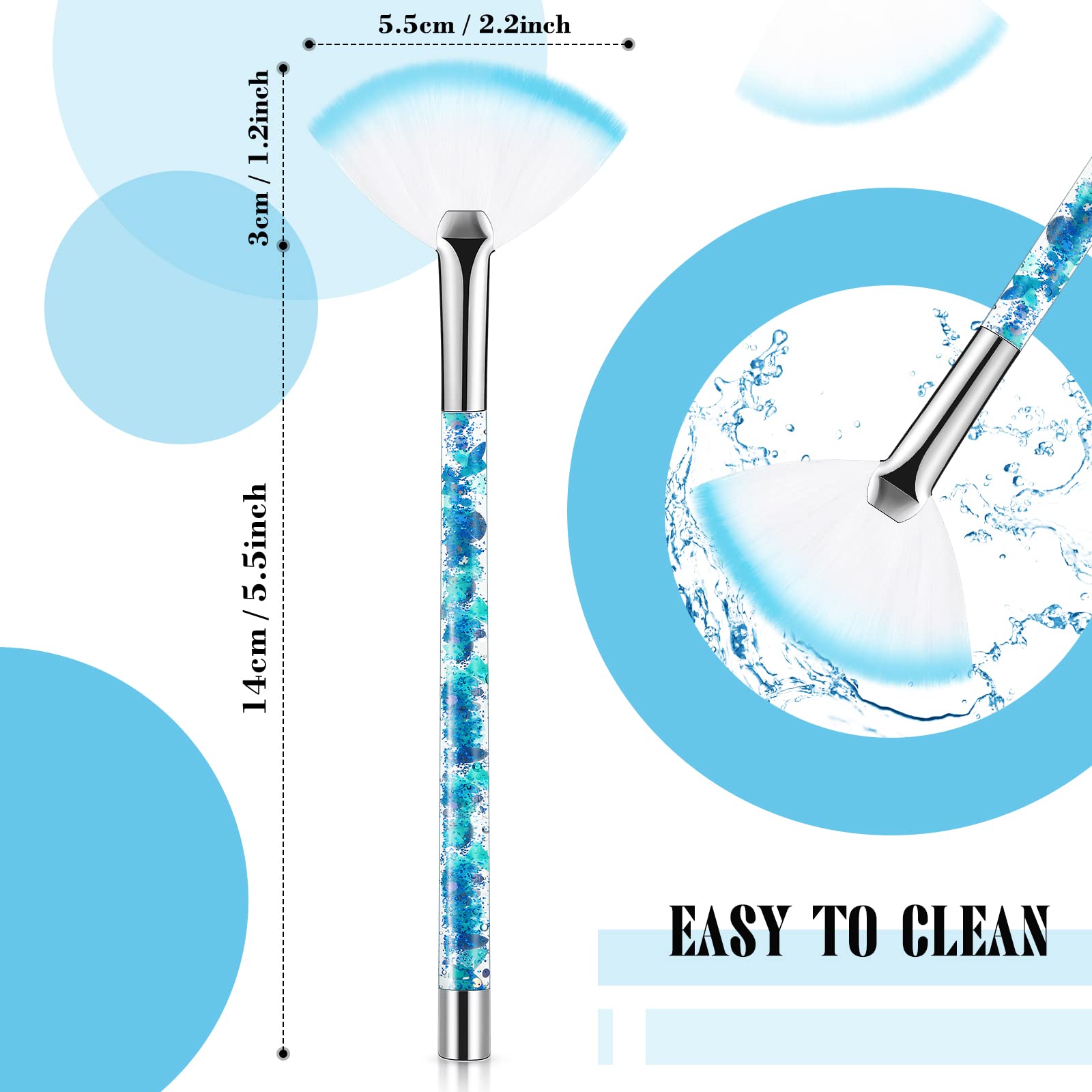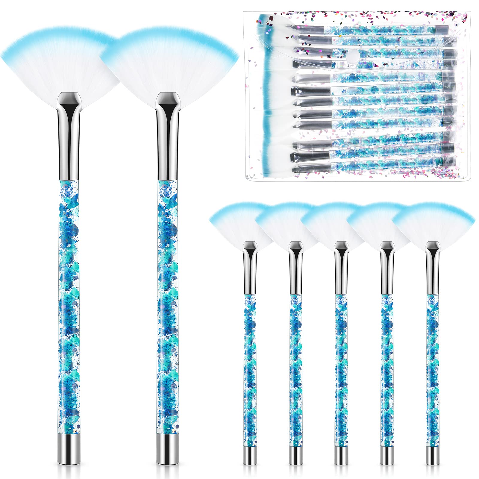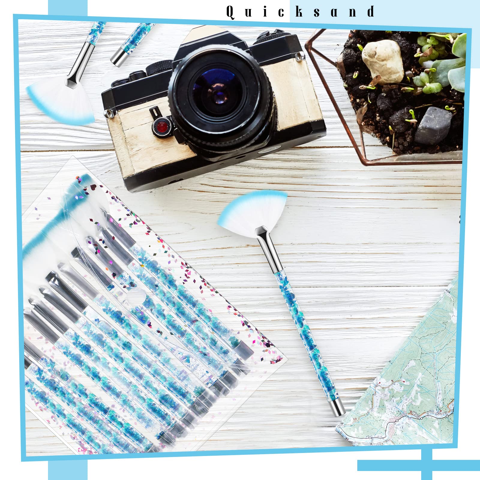 12 Pcs Fan Brushes for Facial Mask Brushes with Glitter Quicksand Handle Cosmetic Facial Fan Brushes Soft Facial Mask Brush Applicator Facial Peel Applicator Face Mask Tools with Pouch (Blue)