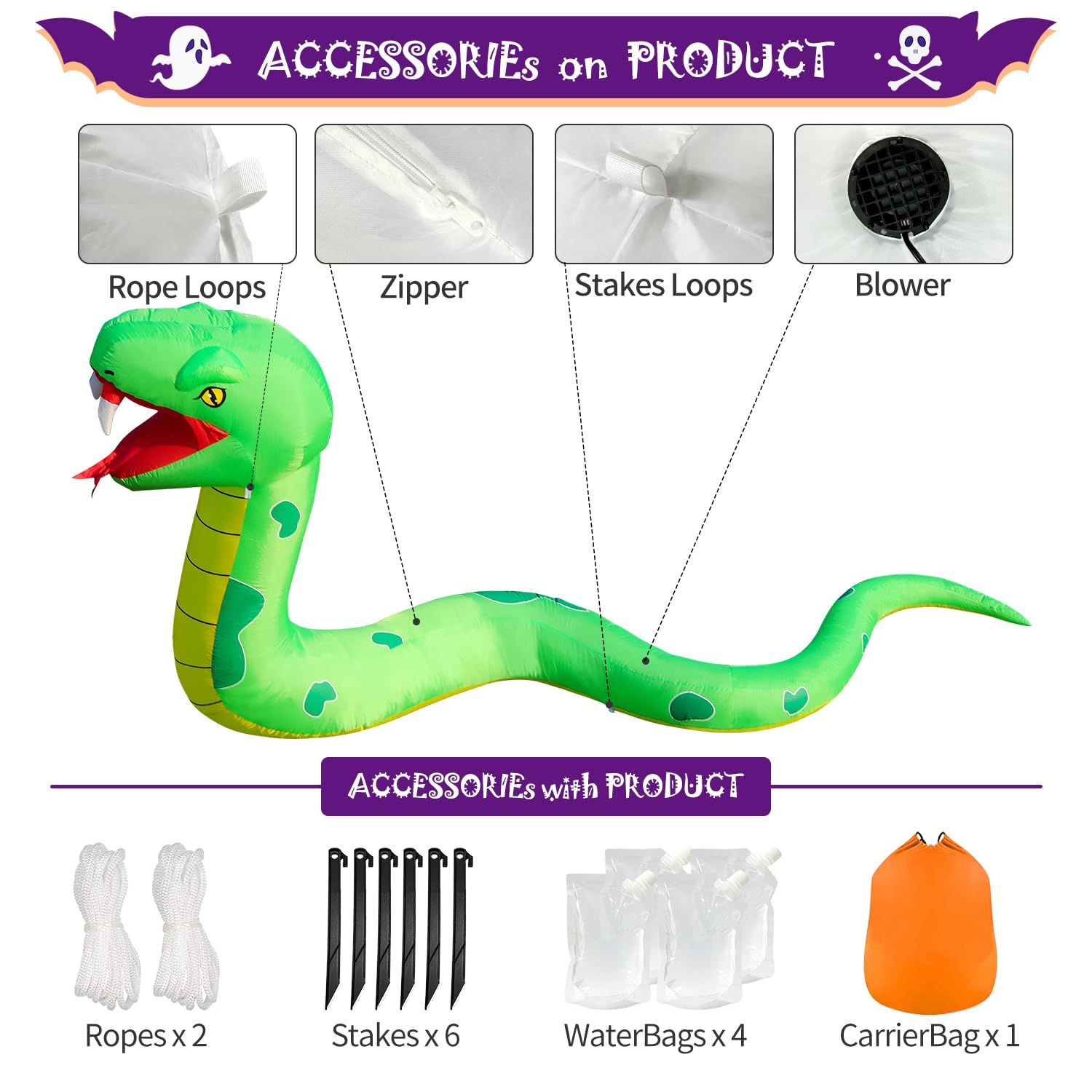 - 【Perfect Halloween Inflatable Decorations】: Celebrate Halloween with Giant Snake. Perfect for outdoor decorations create terrifying atmosphere, immerse your family in an Halloween circumstance. Always be ready to scare and delight all your neighbors and guests. Bringing a Spooky party for trick or treat people!