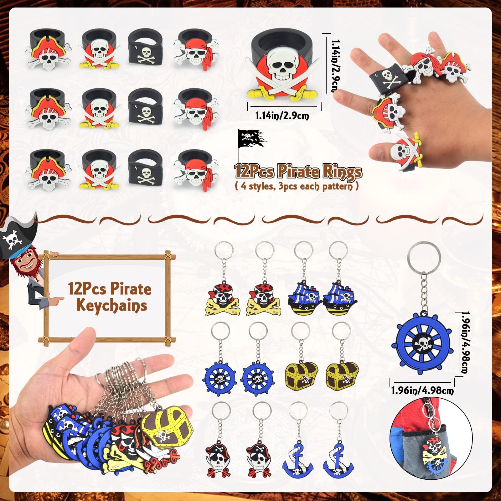 - 【Ideal Pirate Party Gift】Our pirate party favors set can be used not only for pirate party bag fillers, pirate birthday party decorations, pirate party supplies, but also for boys party bag fillers, treasure hunts, carnivals and more. And these pirate keychains, coins, and gems are perfect for treasure chest toys and rewards, Let the cute pirate party favors accompany you a nice day!