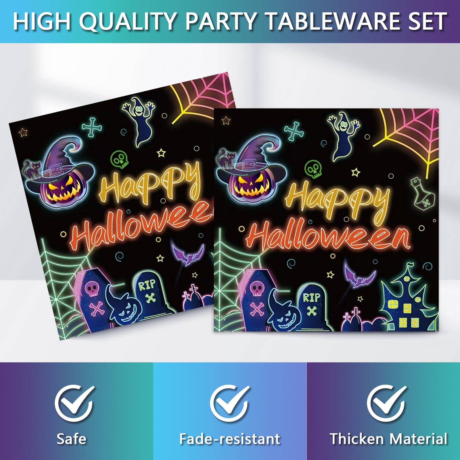 - ⭐【Great for All Occasion】Halloween party paper plates and napkins are suitable for any Halloween theme party. Whether you're looking for cute patterns decor to throw your Halloween party of your dreams or just have some fun at the Halloween theme birthday party, Halloween theme baby shower and more, our paper tableware set is the perfect addition to any Halloween theme party decorations.