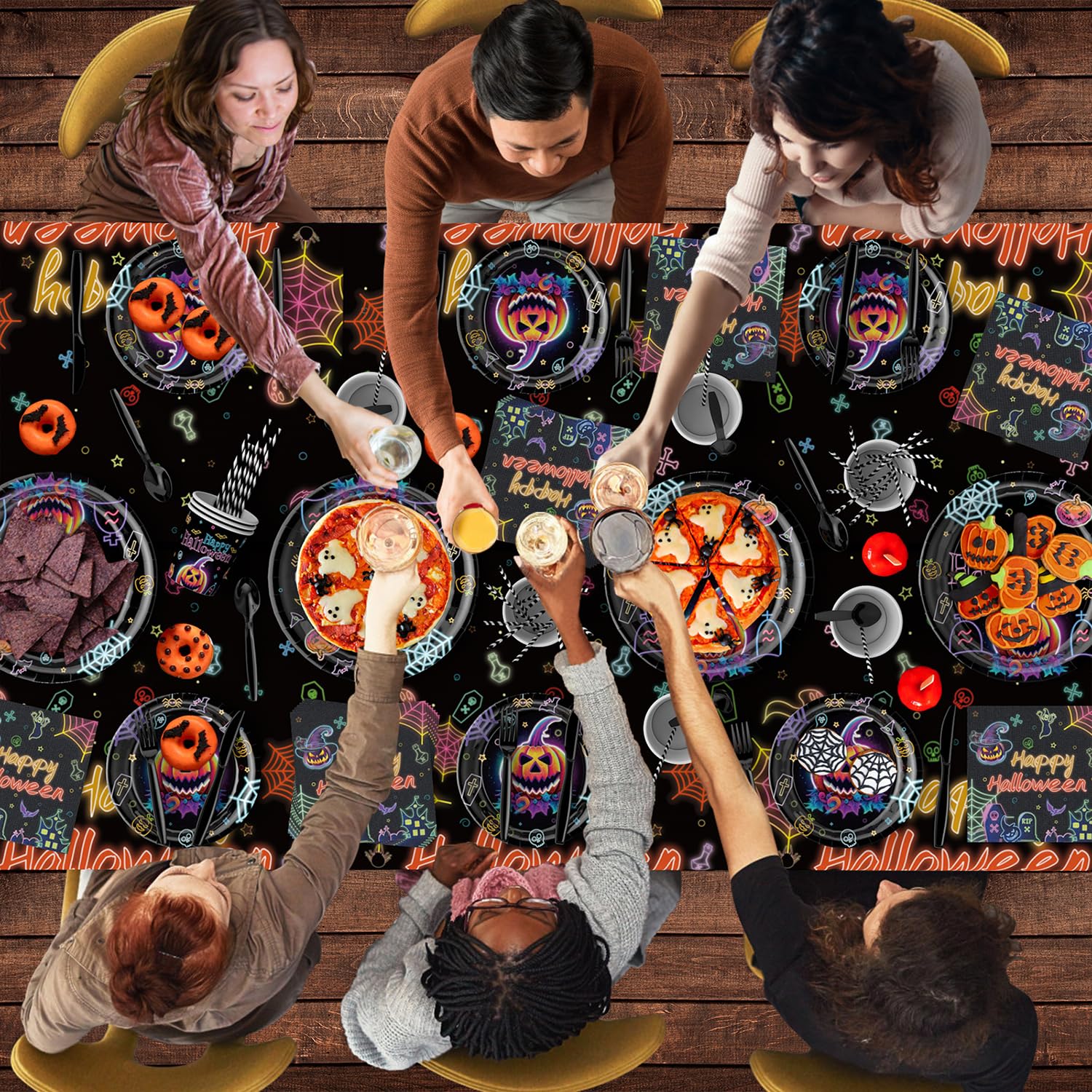 170PCS Halloween Party Plates and Napkins Set, Happy Halloween Holiday Pumpkin Ghost Dinnerware Party Decorations, Disposable Tableware for Kids Birthday Baby Shower Decor, Serve 24 Guests