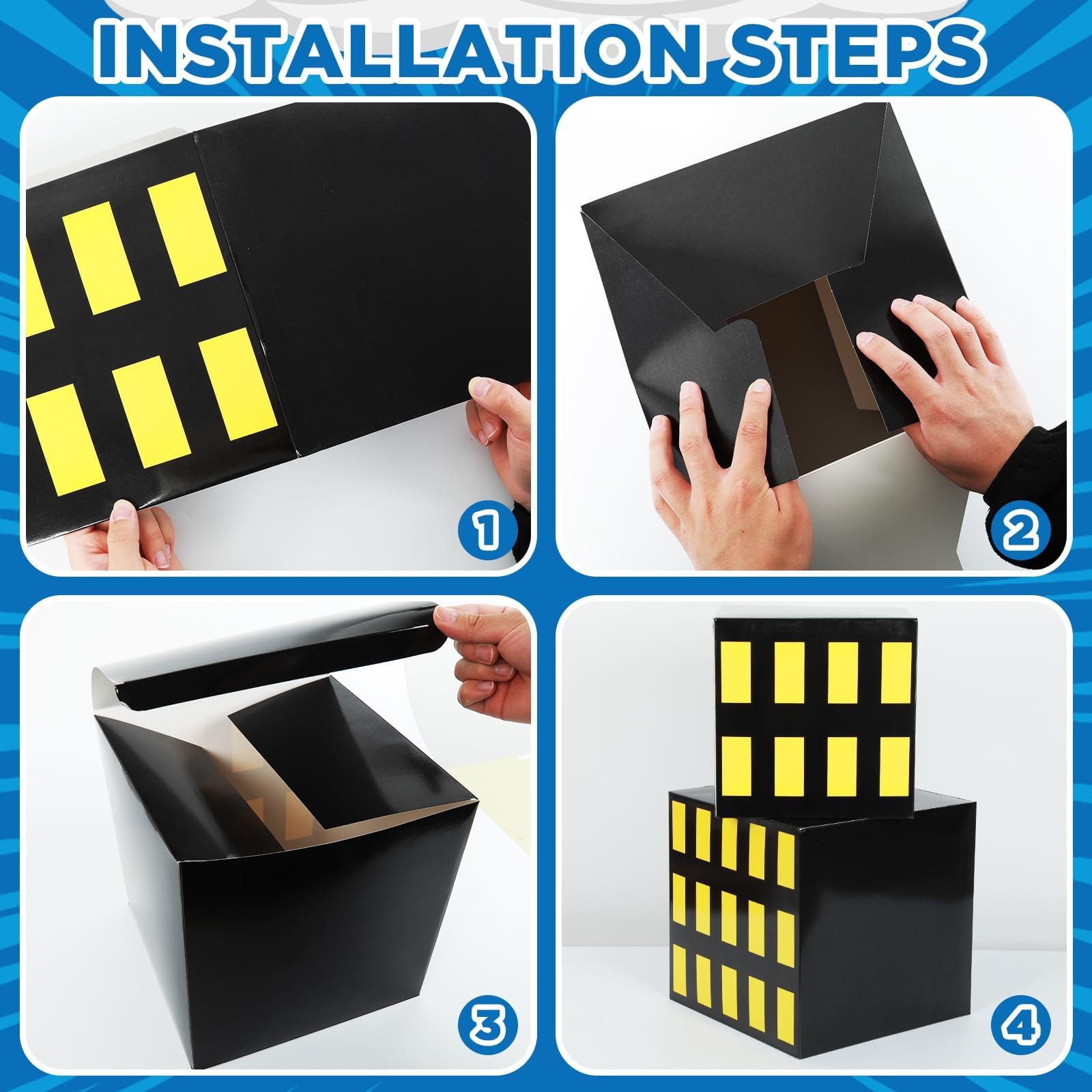 - Hero Theme Background Set: You will receive 1 hero background, 6 skyscraper city boxes, 9 hero cutouts and 1 super theme banner, decorate them on the wall, can provide rich super theme hero party colors.