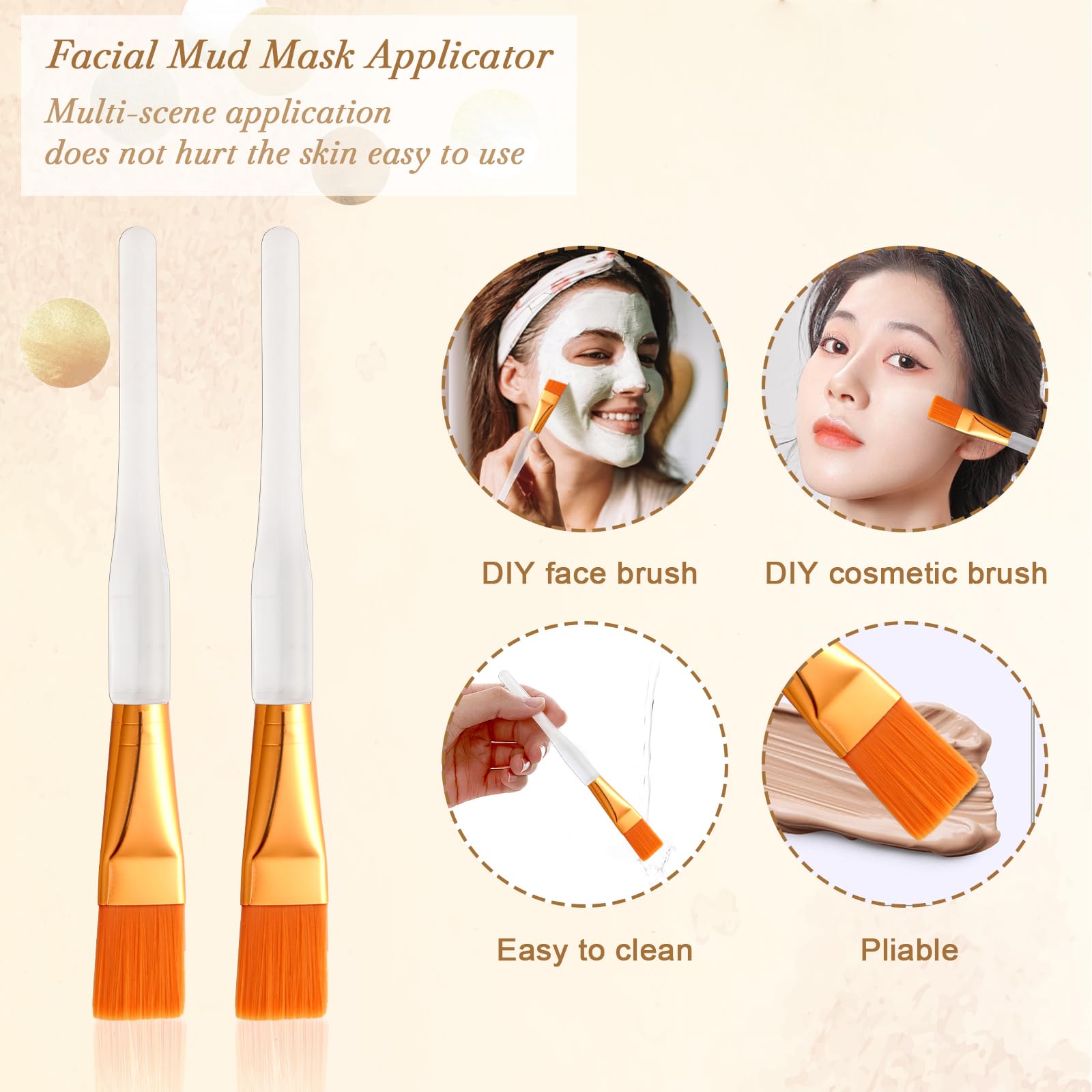- 2.BEAUTIFUL GOLD STYLE:This facial set looks beautiful. The mask bowl is a gold colored style with a smooth surface; the fan shaped makeup brush is a white plastic rod for a fresh and natural look; and the flat mask brush uses a clear plastic rod for simplicity.