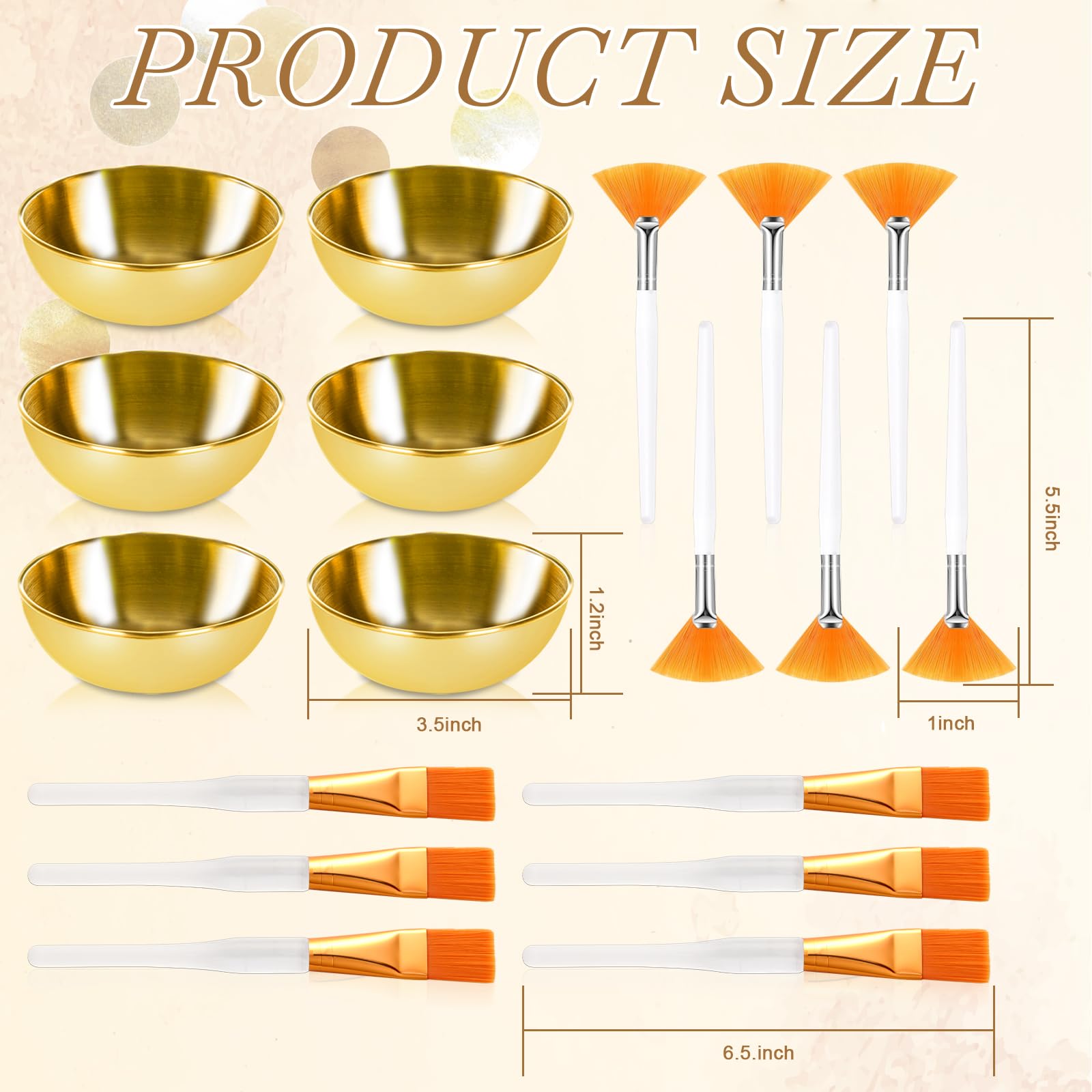 - 1.PACKAGE CONTAINS: This facial supplies set contains 6 pieces golden mixing face mask bowls(3.5X1.2 inch), 6 white handle fans brushes(5.5x1 inch) and 6 flat brushes for face mask(6.5 inch length).This is the perfect combination of facial makeup and treatment.