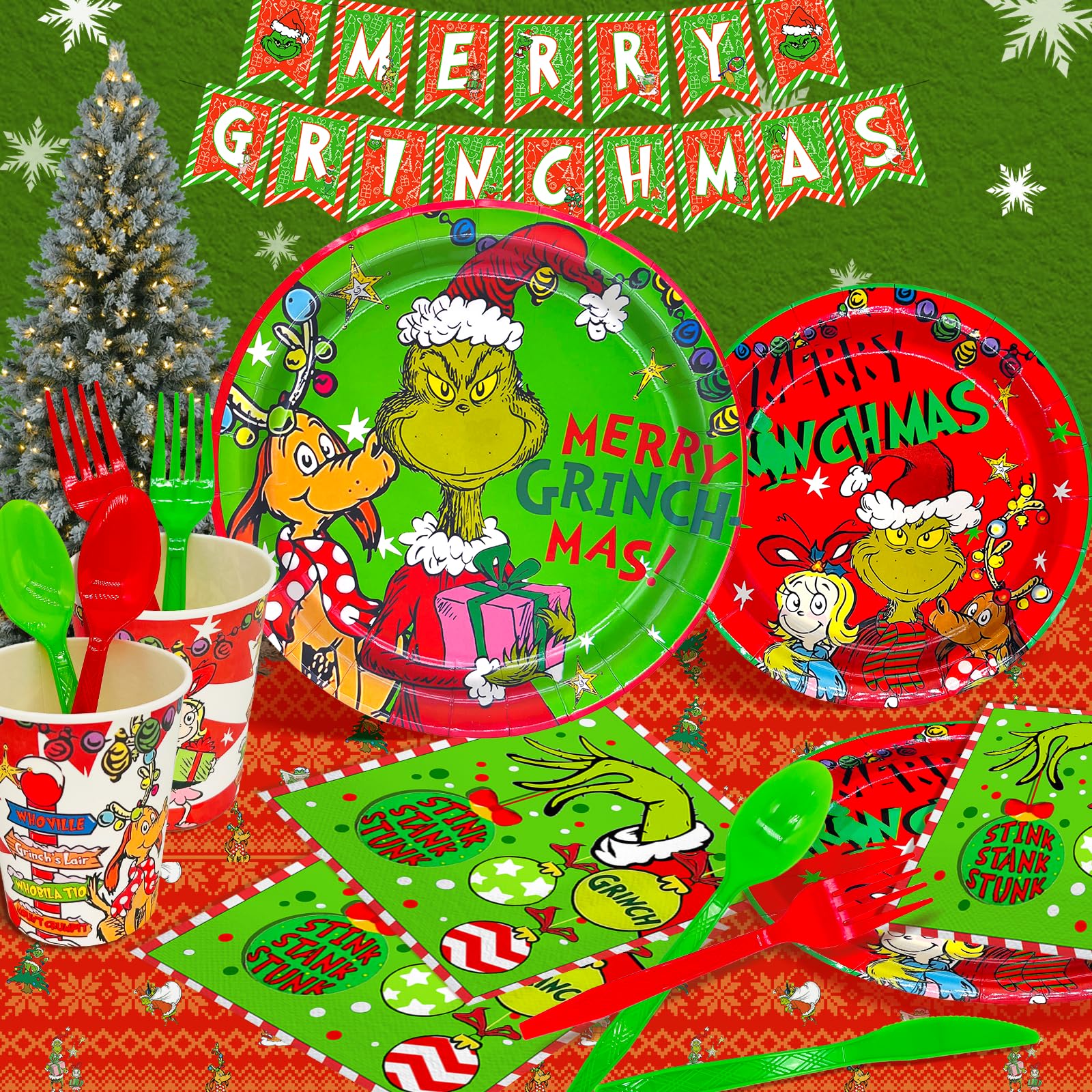 - Occation:Our disposable dinnerware set is the perfect choice for almost any green monster christmas decorations get together. Perfect for Christmas party decorations,Christmas Party Decor,merry friendsmas party, chirstmas birthday party.