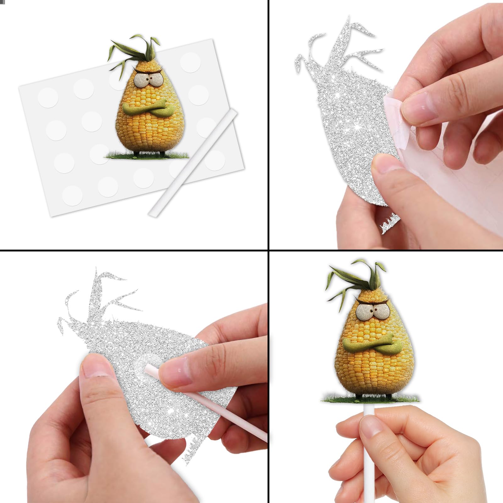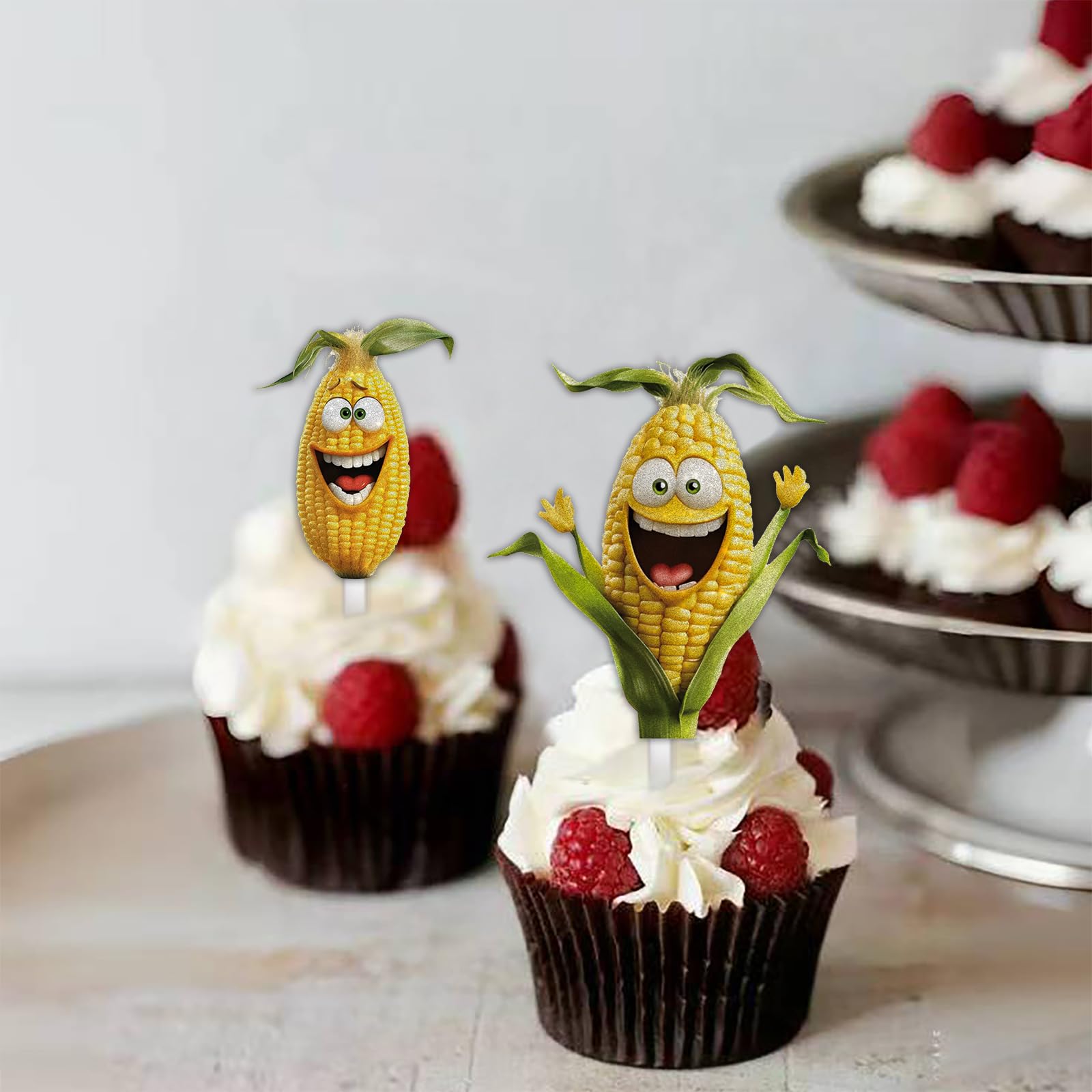 18pcs Yellow Glitter Dessert Cupcake Topper Funny Vegetable Corn Theme Decor Supplies Baby Shower Boys Girls Happy Birthday Party Decorations