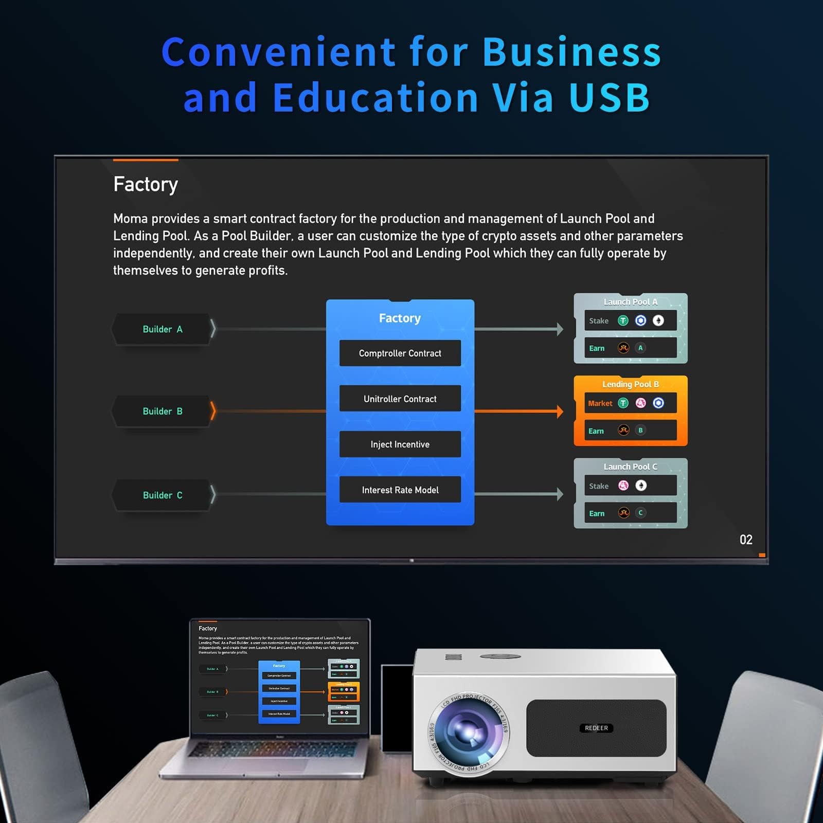 - 【Presentation via USB& Easily Upgrade System】This video projector can play Adobe PDF files Microsoft office directly via USB and view them on the projector.But others only support text format.Short throw projector is updating the software according to client’s request again and again.Redeer Projector 4K provides professional technical support. Any problems, please let us know anytime.