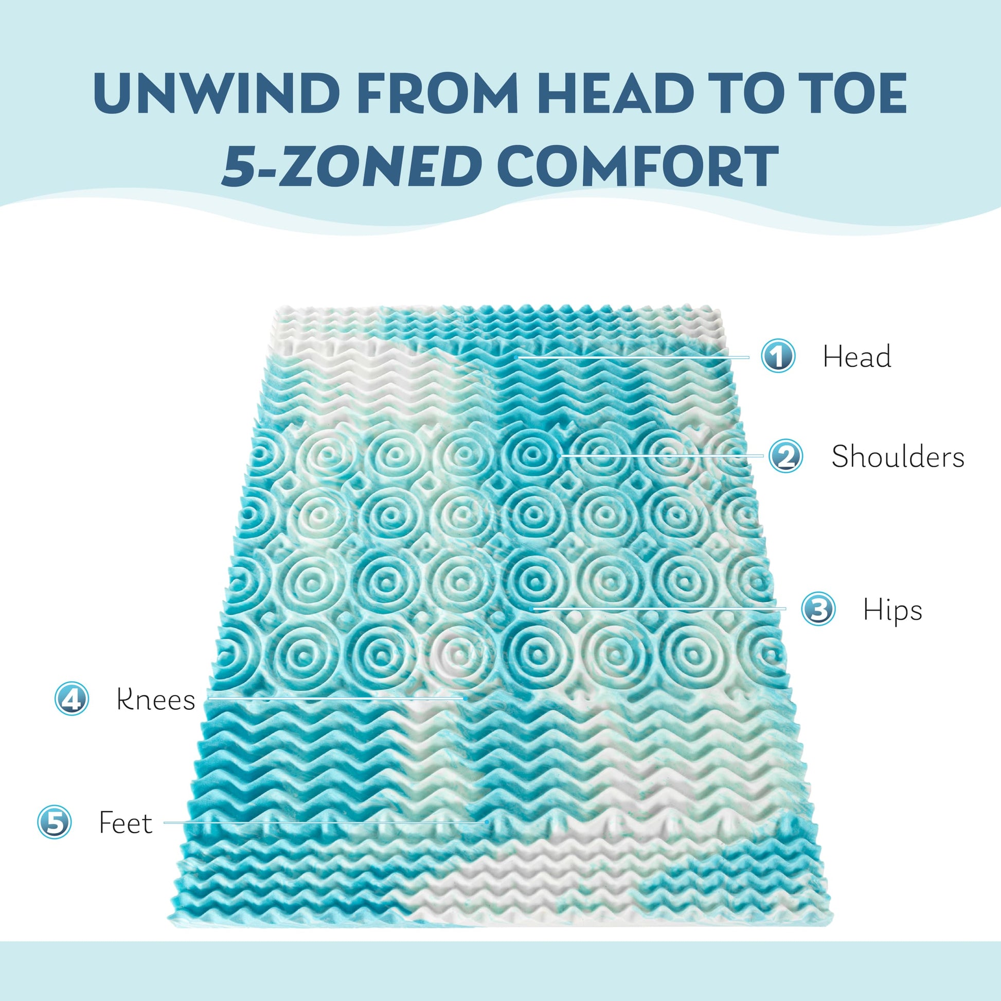 2 Inch 5-Zone Queen Memory Foam Mattress Topper, Gel Infused Foam Mattress Topper for Pressure Relief, CertiPUR-US Certified Queen Bed Topper,Blue, 60"×80"