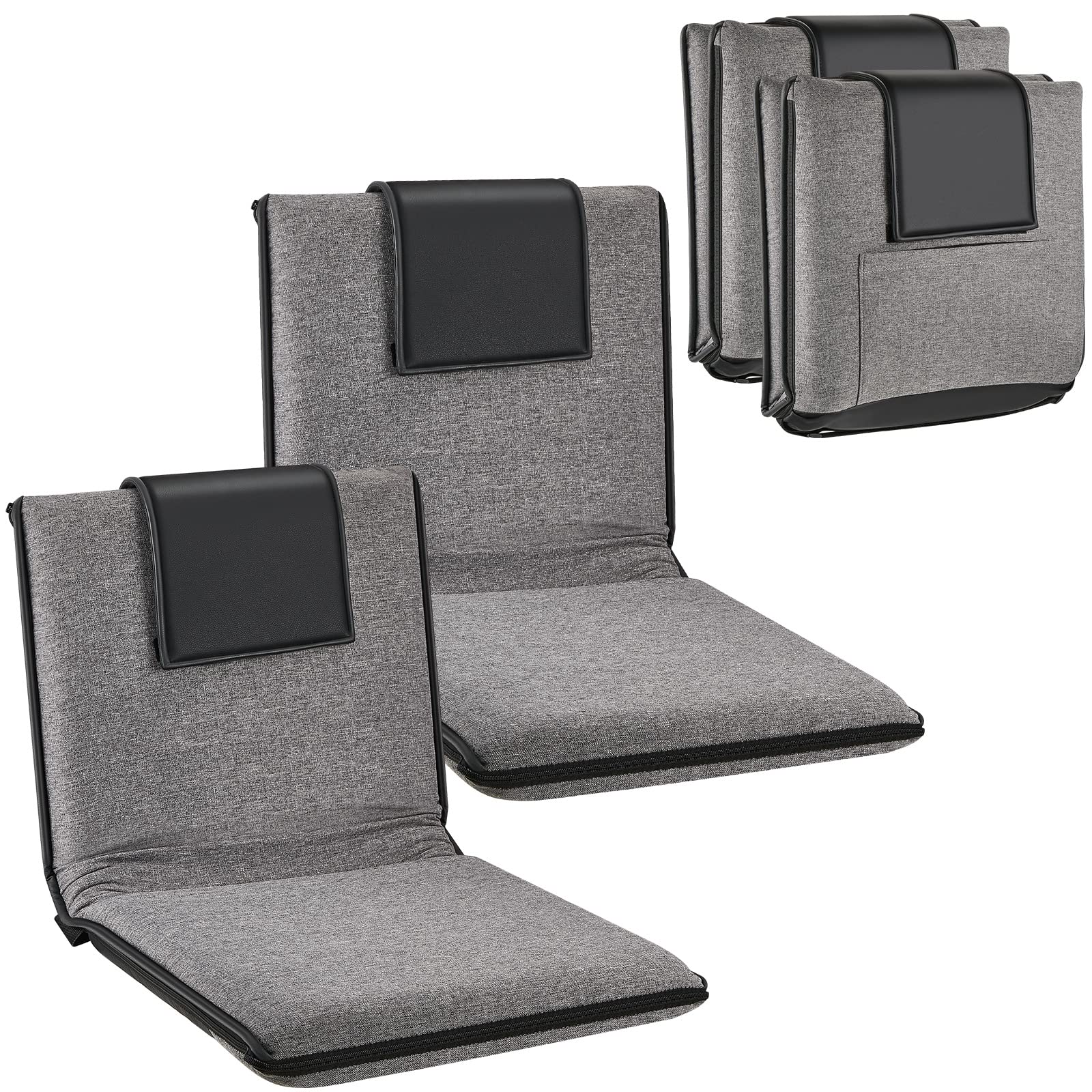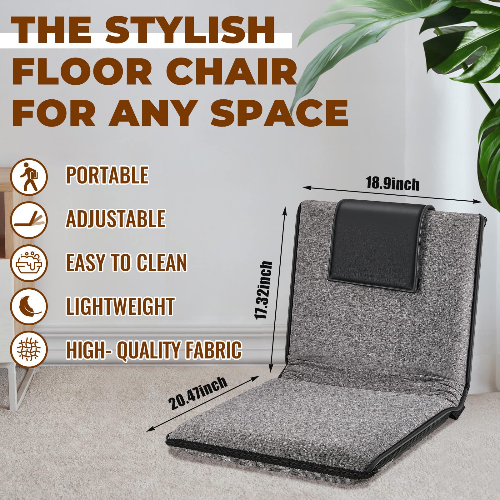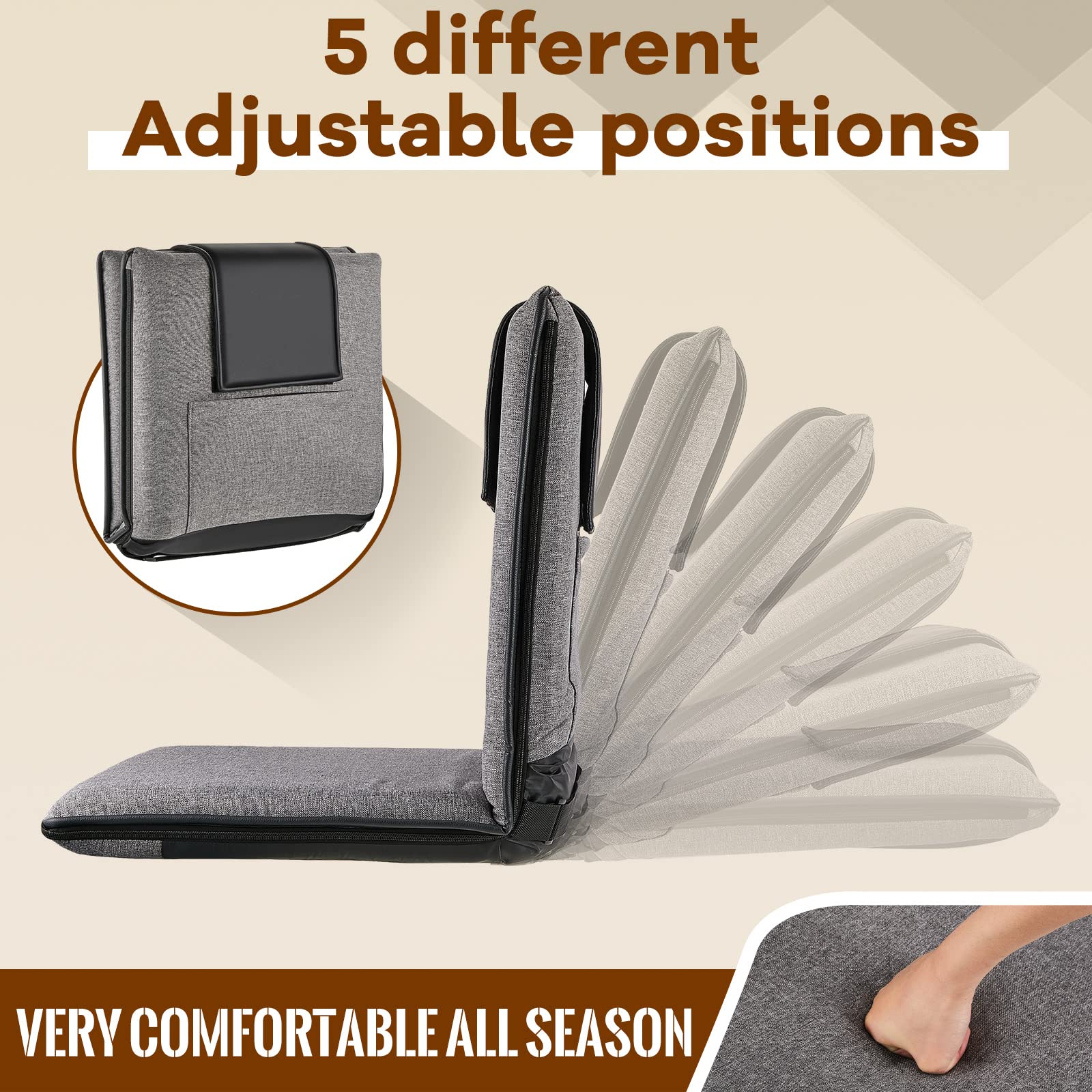 2 Pcs Adjustable Floor Chair with Back Support, Padded Seat, Portable, Meditation Cushion, Fully Folding Backrest for Adult, Kid, Gaming - Linen Washable Cover, Nylon Bottom (Gray, Black)