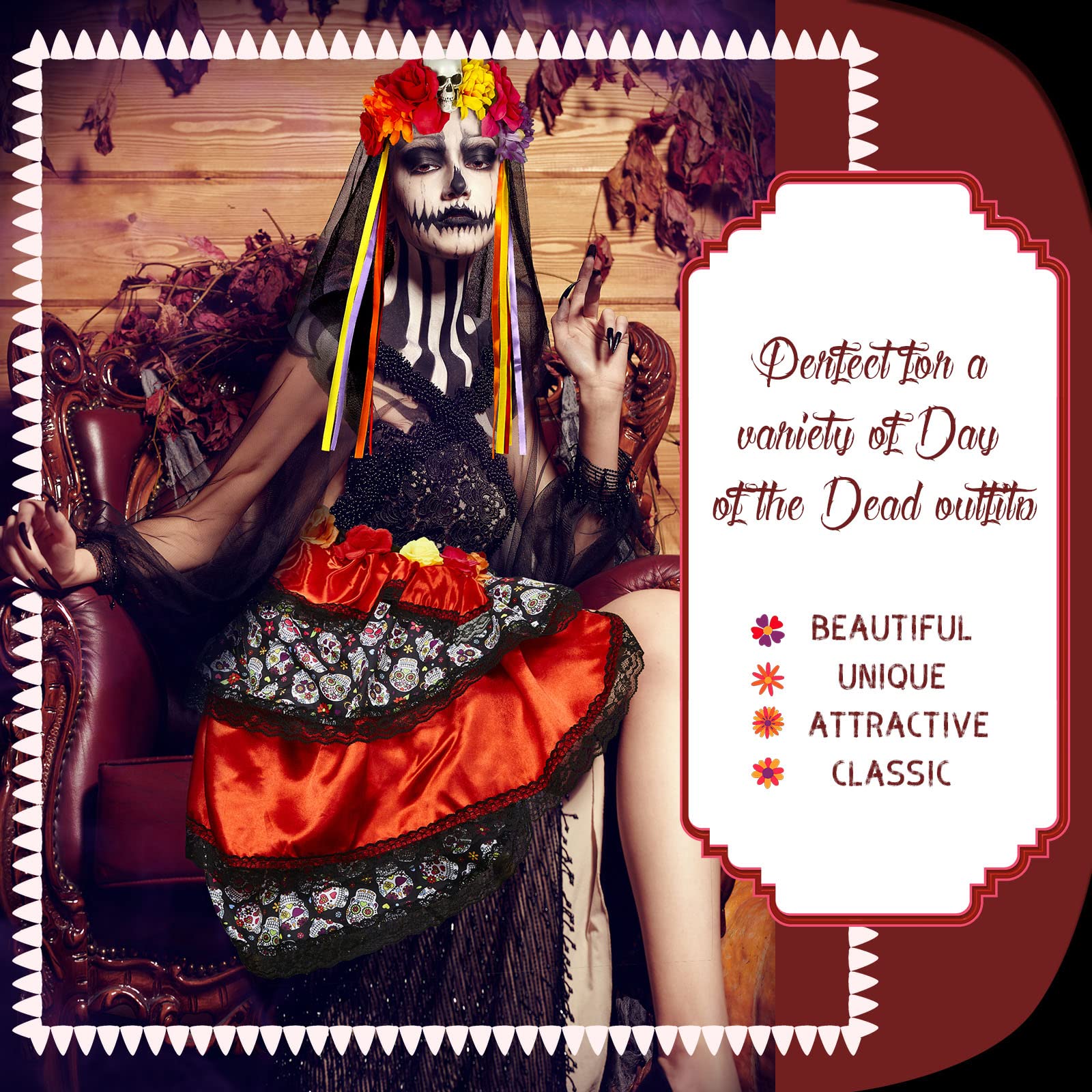 - Widely Applicable: the Day Of The Dead outfits for women can be widely applied for Halloween parties, Day Of The Dead, masquerades, cosplay parties, costumes parties, photo props, festivals, weddings and more occasions