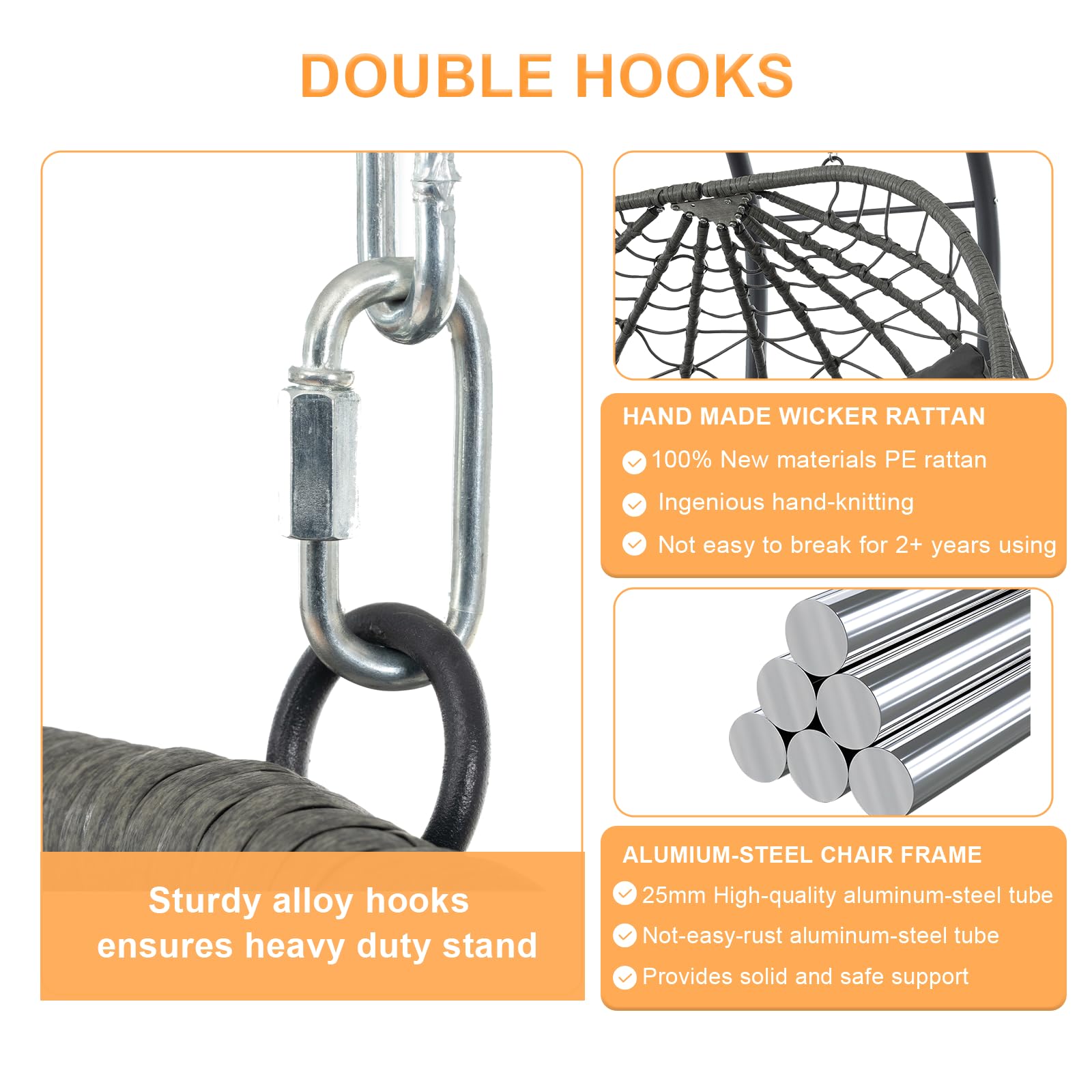 - [Sturdy and Durable]: Hanging egg chair with stand's aluminum-steel frame and a sturdy heavy-duty steel stand ensures extend lifetime, and the sturdy stand provides stable support, the chain can hold up to 700 lbs, you can enjoy it for ears.
