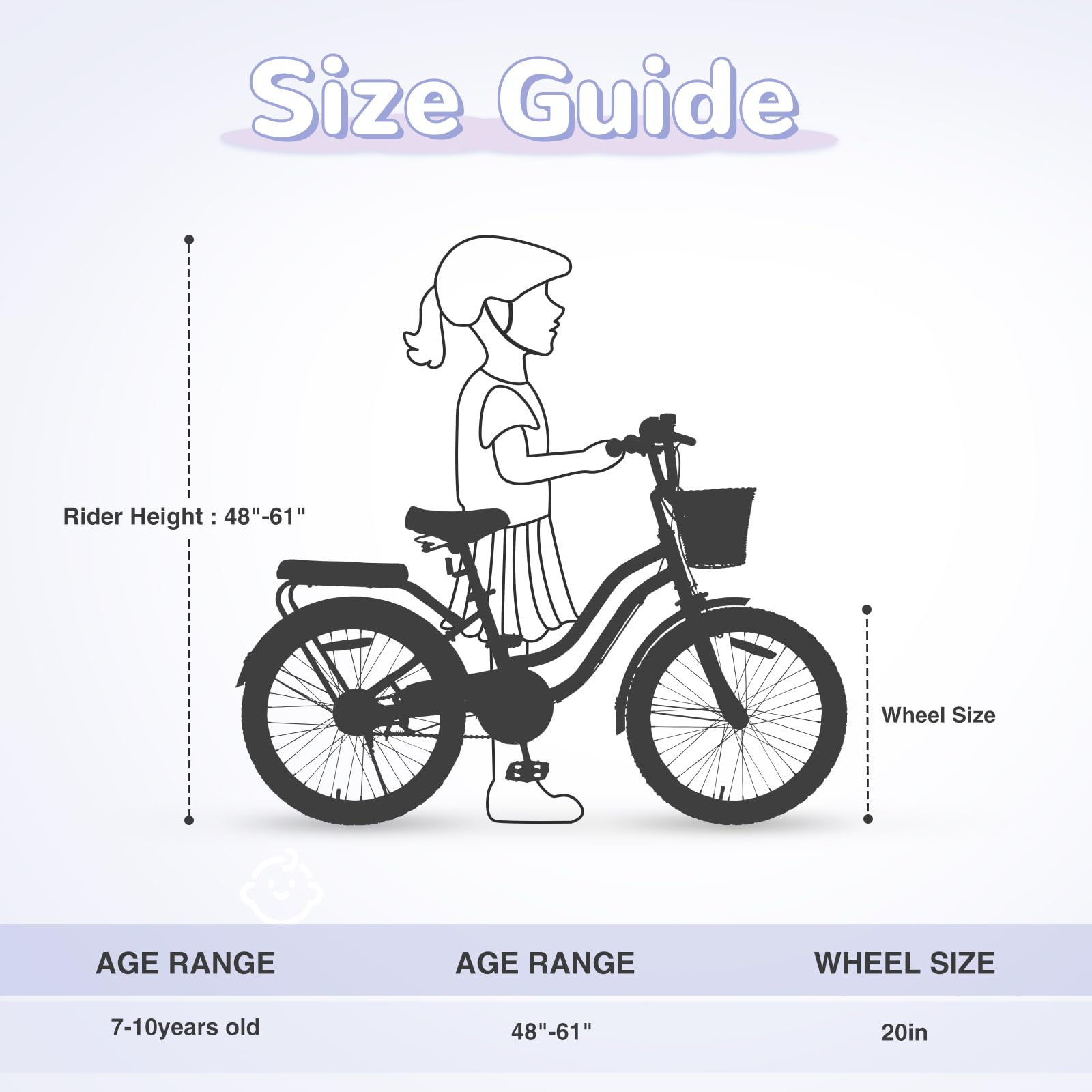 20" Inch Girls Bike Kids Bikes Girl Bicycle 20” Bikes 20 Bike for Girls Ages 7 8 9 10 Years Old,MTB Single Speed Bicycle,Enclosed Chainguard Kids' Bicycles,3 Colors (Light Purple)