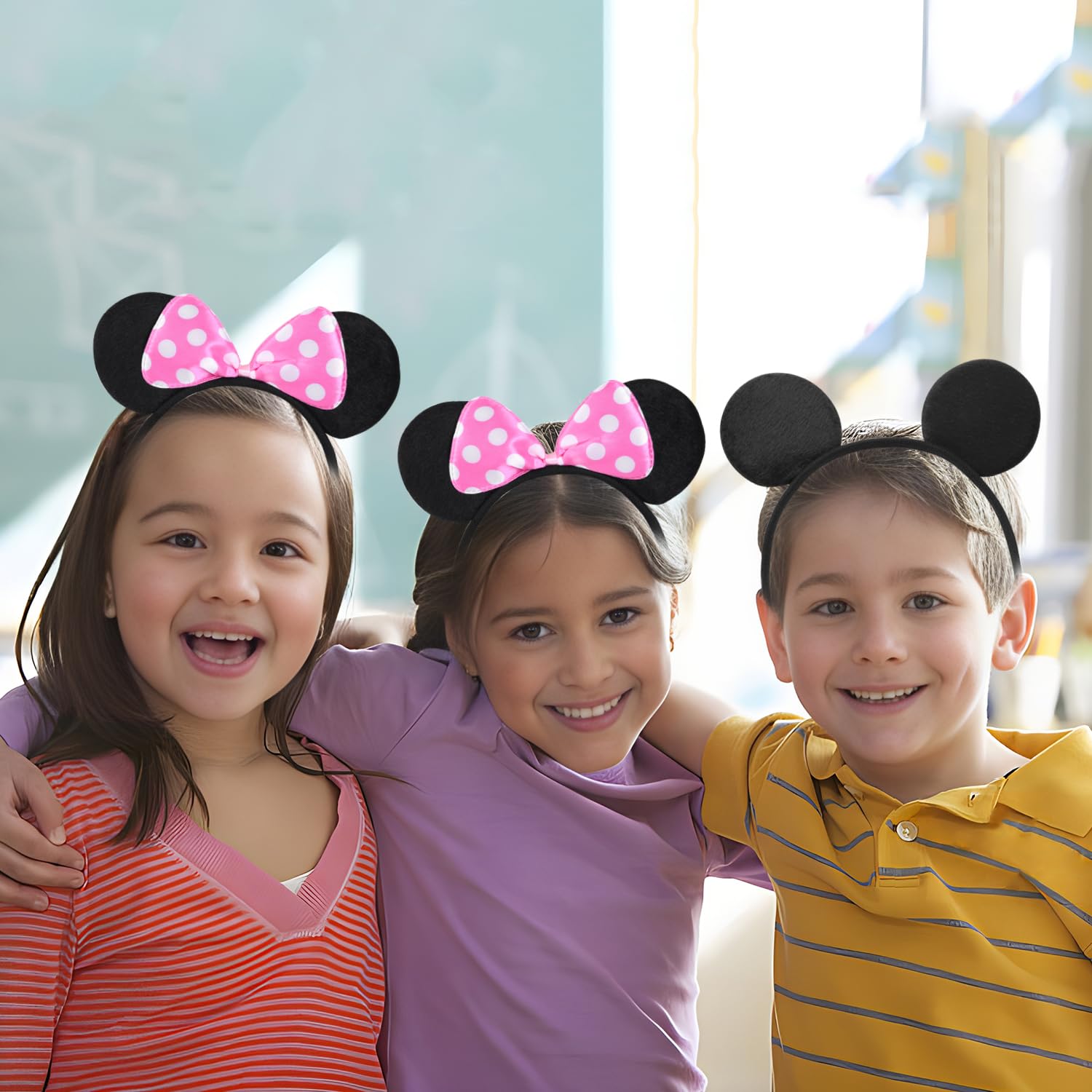- GREAT VALUE: Come with 20 pcs Mouse Ears Headbands in 2 style (10 ears blackfor boys and 10 ears with Pink bow for girls )The set of 20 Mouse ears party supplies are the must-have items for anyone who wants to have themed party. These headbands will amuse kids and adults.