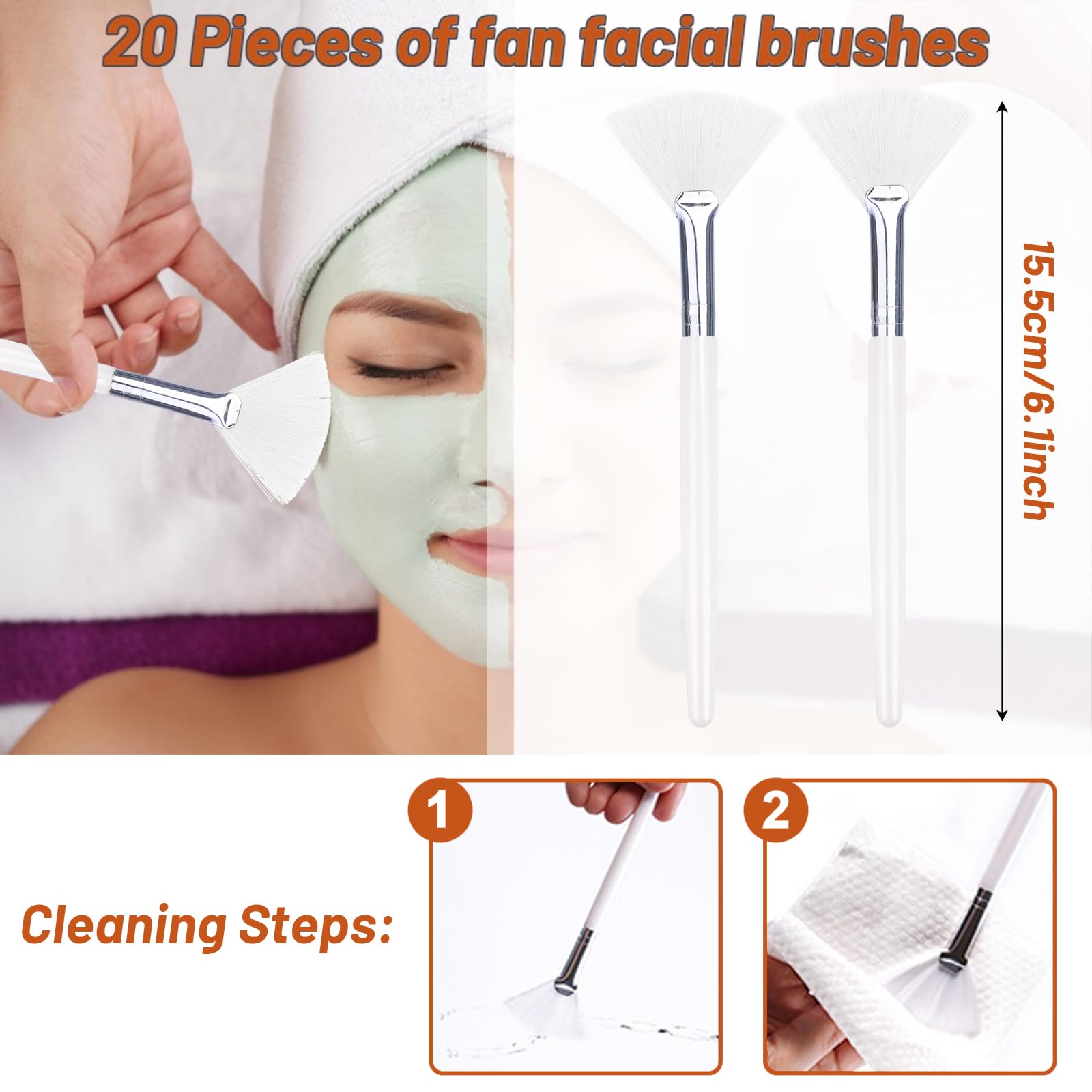 20 Pieces Fan Brushes Facial Applicator Brush Soft Makeup Mask Acid Applicator Brush Esthetician Cosmetic Brush for Mud Cream, Makeup Peel (White)