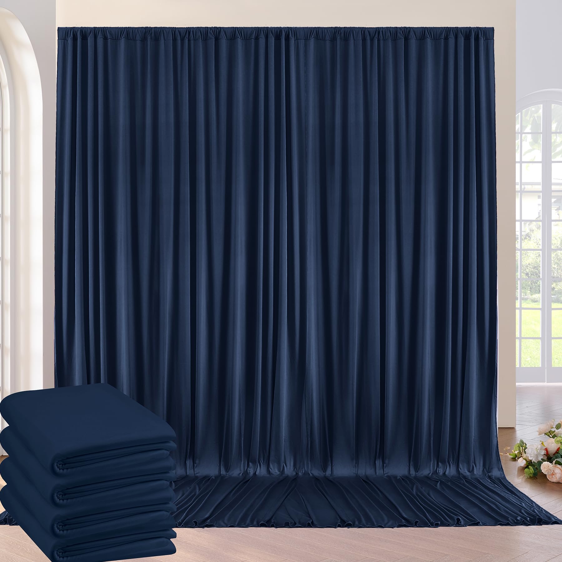 - 20×8ft NAvy Backdrop Curtain - Your package will come with 4 panels 5ft(W)×8ft(H) navy blue backdrop curtains, total size is 20ft(W)×8ft(H), perfect fit wedding drapes, big party backdrop, or family photo backdrop curtain.