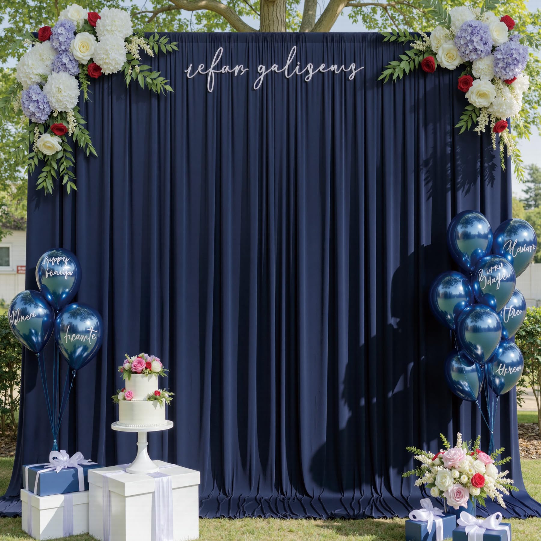 - 10ft Fabric Drape navy blue Backdrop Curtain Wide Compatibility: Polyester photo drape blue backdrop curtain can be used for parties, baby shower, wedding, birthday party, photography, bridal shower, gender reveal, zoom, princess party, engagement party, baptism, candy buffets, dessert table, sweet table, background, photo booths, photoshoot, ceremony, anniversary, graduation, home decorations, holiday party, stage curtain or just to mask unsightly areas
