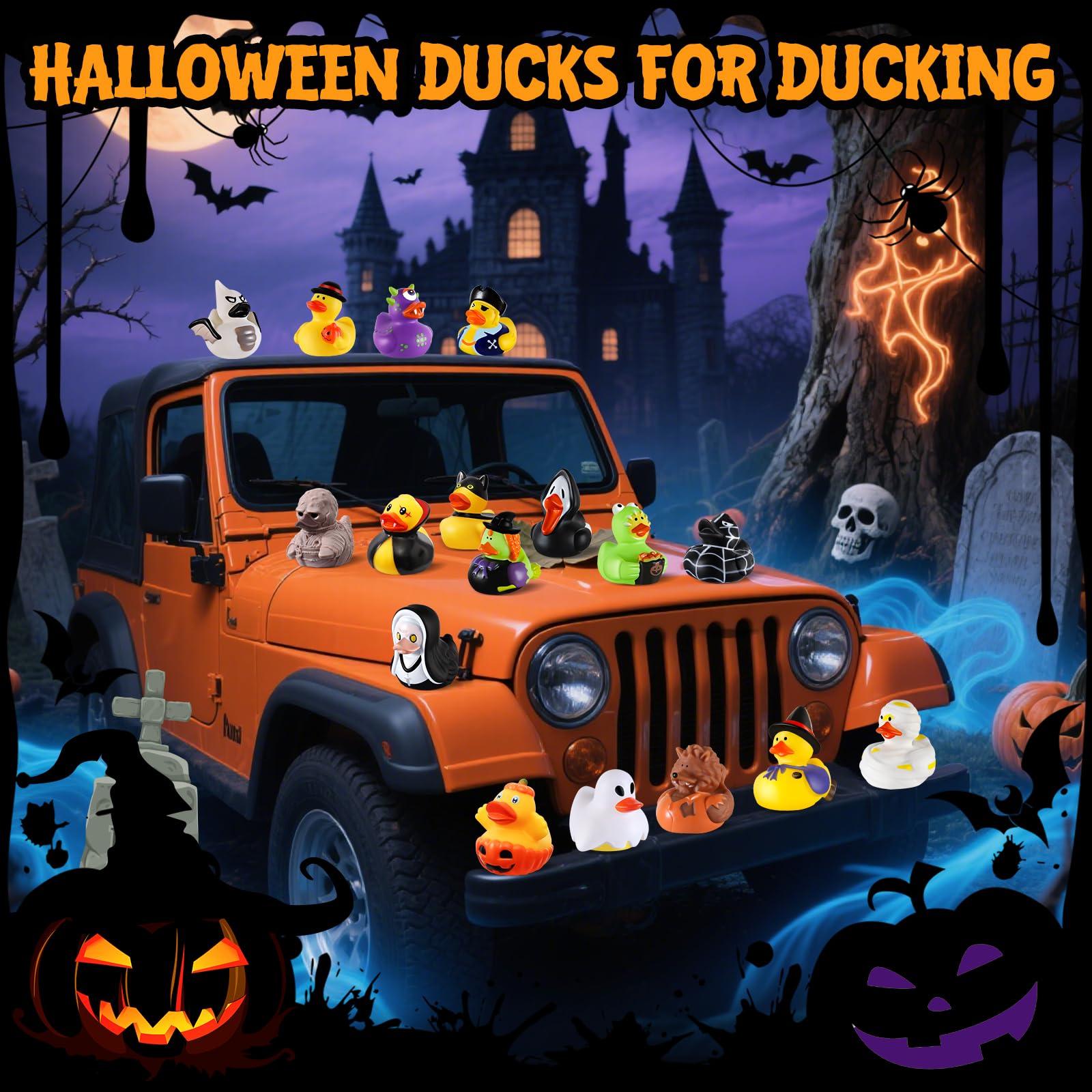 - Share the Halloween Joy Everywhere: Add fun to your Halloween celebrations with these cute Halloween rubber ducks! These rubber ducks are ideal for jeeps and ducks ducking, bringing smiles everywhere they go. Great as Halloween party favors, Halloween gifts, or Halloween goodie bag stuffers. The set is a perfect choice for anyone seeking Halloween toys for kids, Halloween treats for kids, and creative Halloween prizes for kids