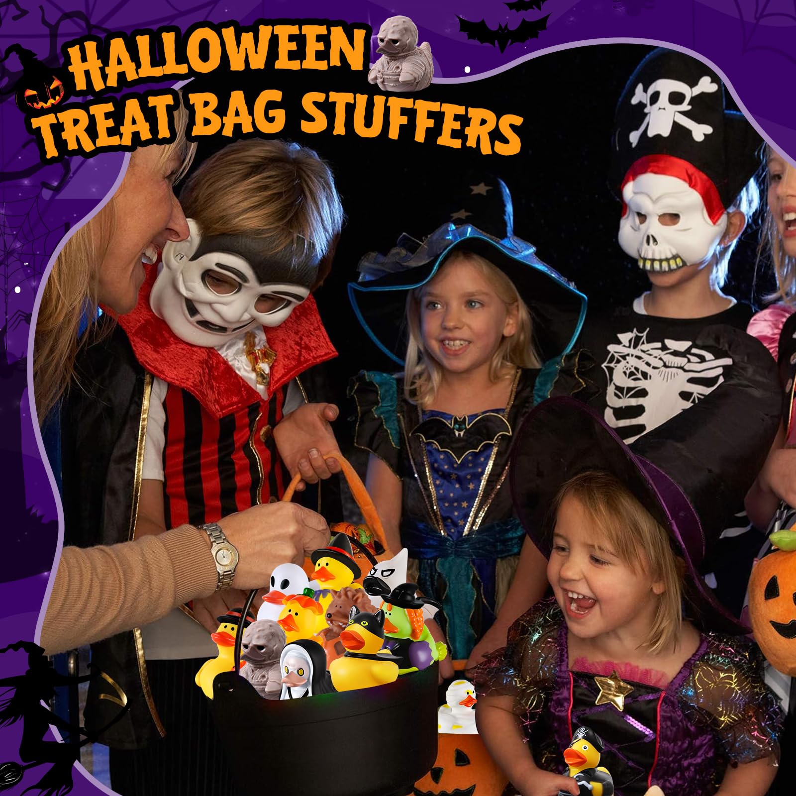 - Halloween Treats Non-Candy: Looking for a fun and healthy option this Halloween? Our 24 PCS Halloween ducks bulk set is the perfect Halloween treats non candy alternative! Made from safe, durable rubber, these rubber ducks for jeeps encourage imaginative play, and bring endless laughter during bath time or party games. They are ideal as Halloween toys for kids, Halloween gifts for kids, Halloween prizes, and Halloween party favors, making them a smart choice for parents who want to avoid sugary sweets