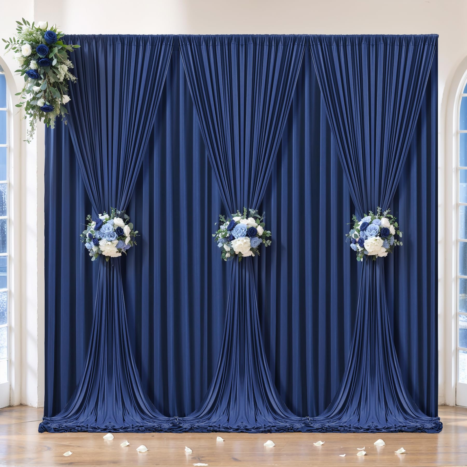 - 【Navy Blue Backdrop Curtains Packages】You will receive 6 panels navy blue wedding backdrop curtains(Each panel size: 10'L X 4'W). The 4 inch rod pocket makes a simple installation without any damage to the curtain rod. The navy blue party curtains backdrop is perfect for covering walls elegantly with flowers or ballons.