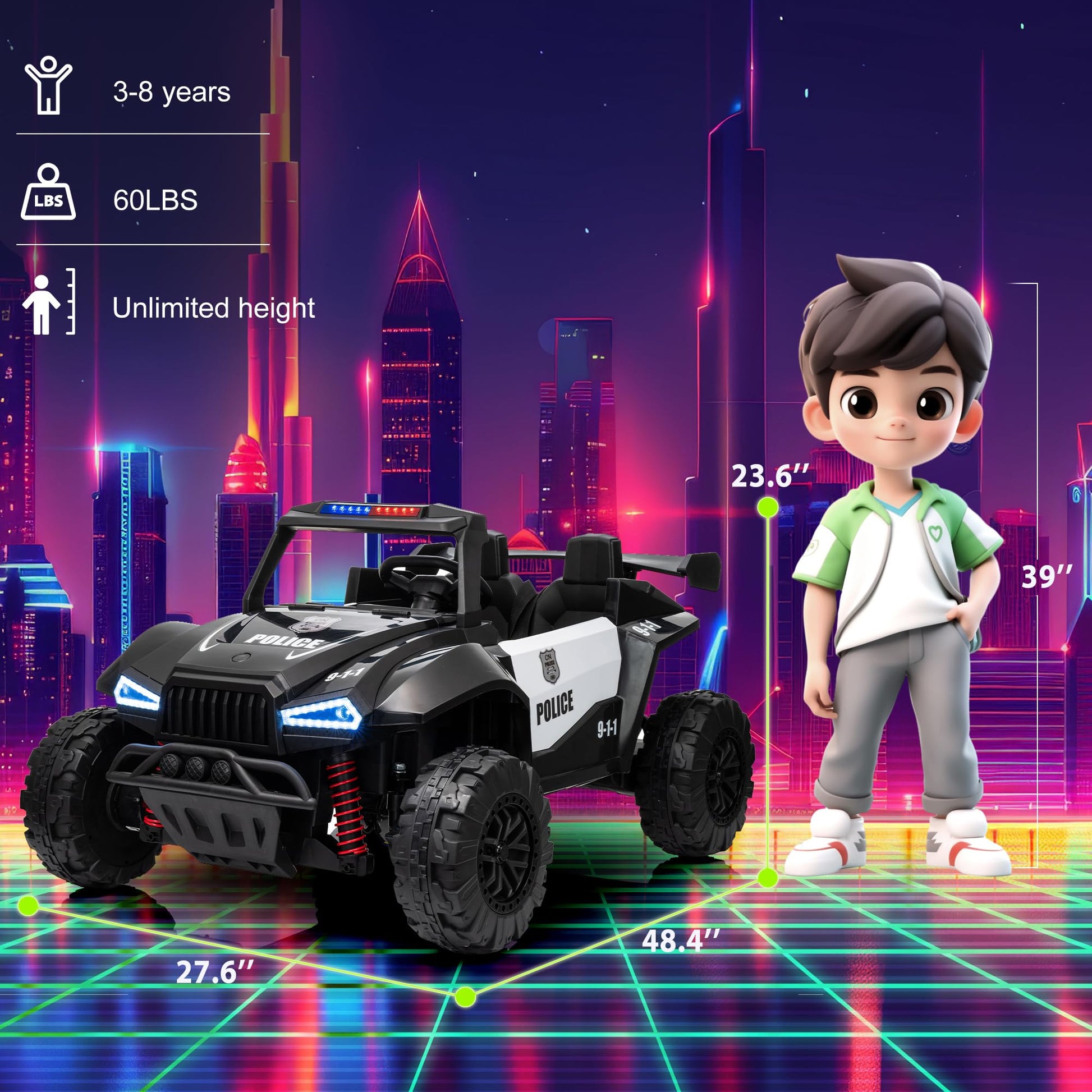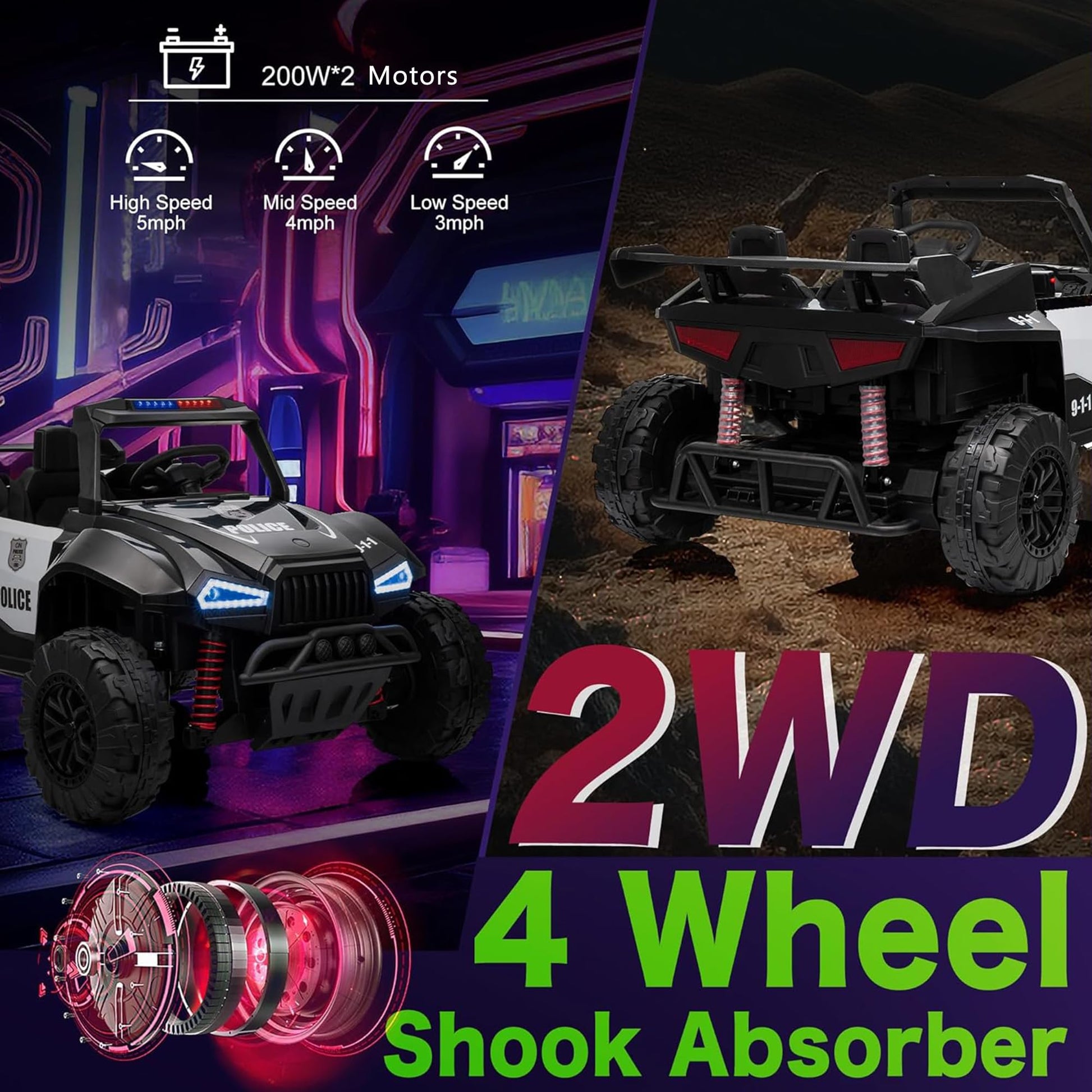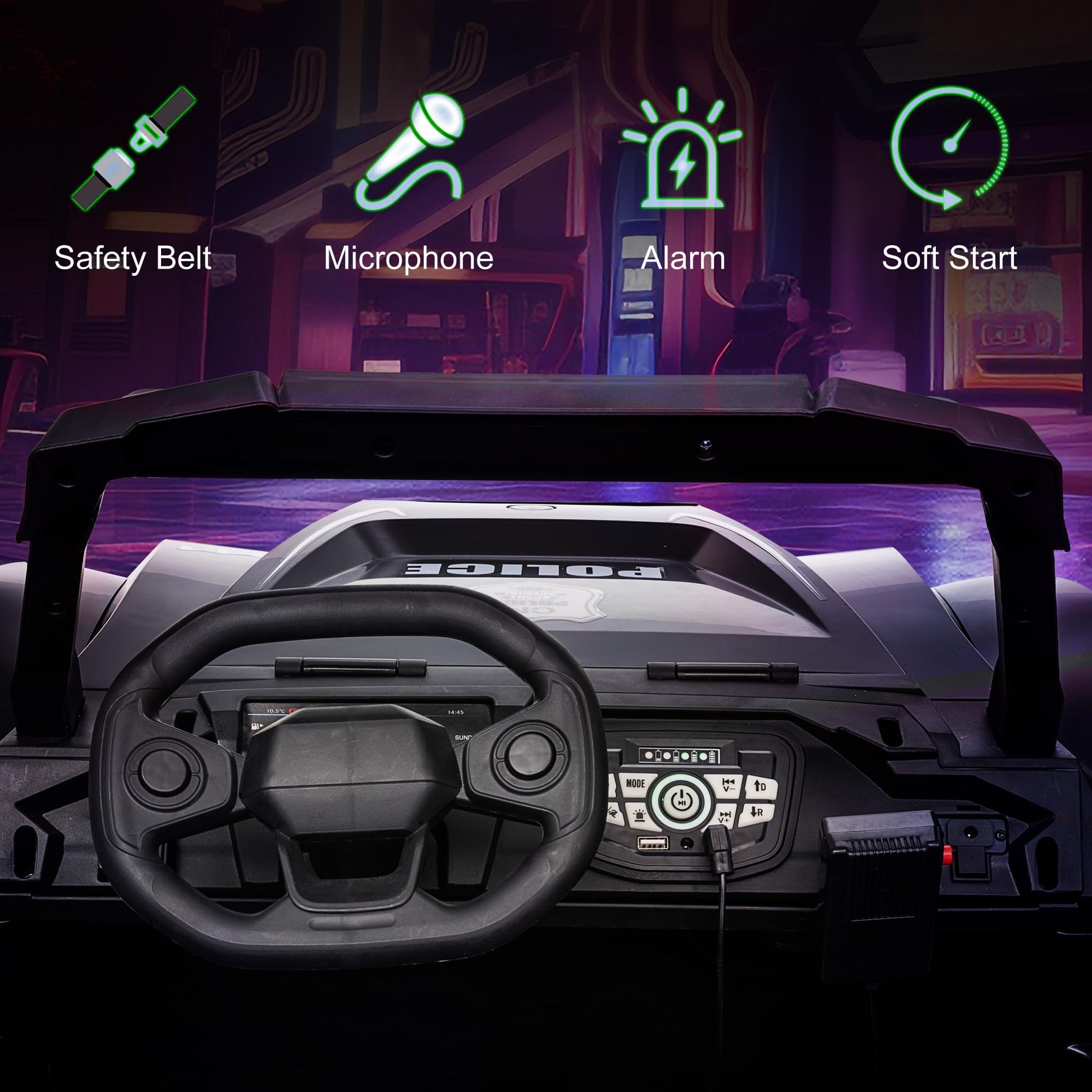 - 3. Cool Lights, Music On the Go:** Built-in dynamic front lights and police lights make night rides more dazzling. Supports music playback via USB/TF card, equipped with an MP3 interface and microphone, allowing children to sing and play, endless fun.