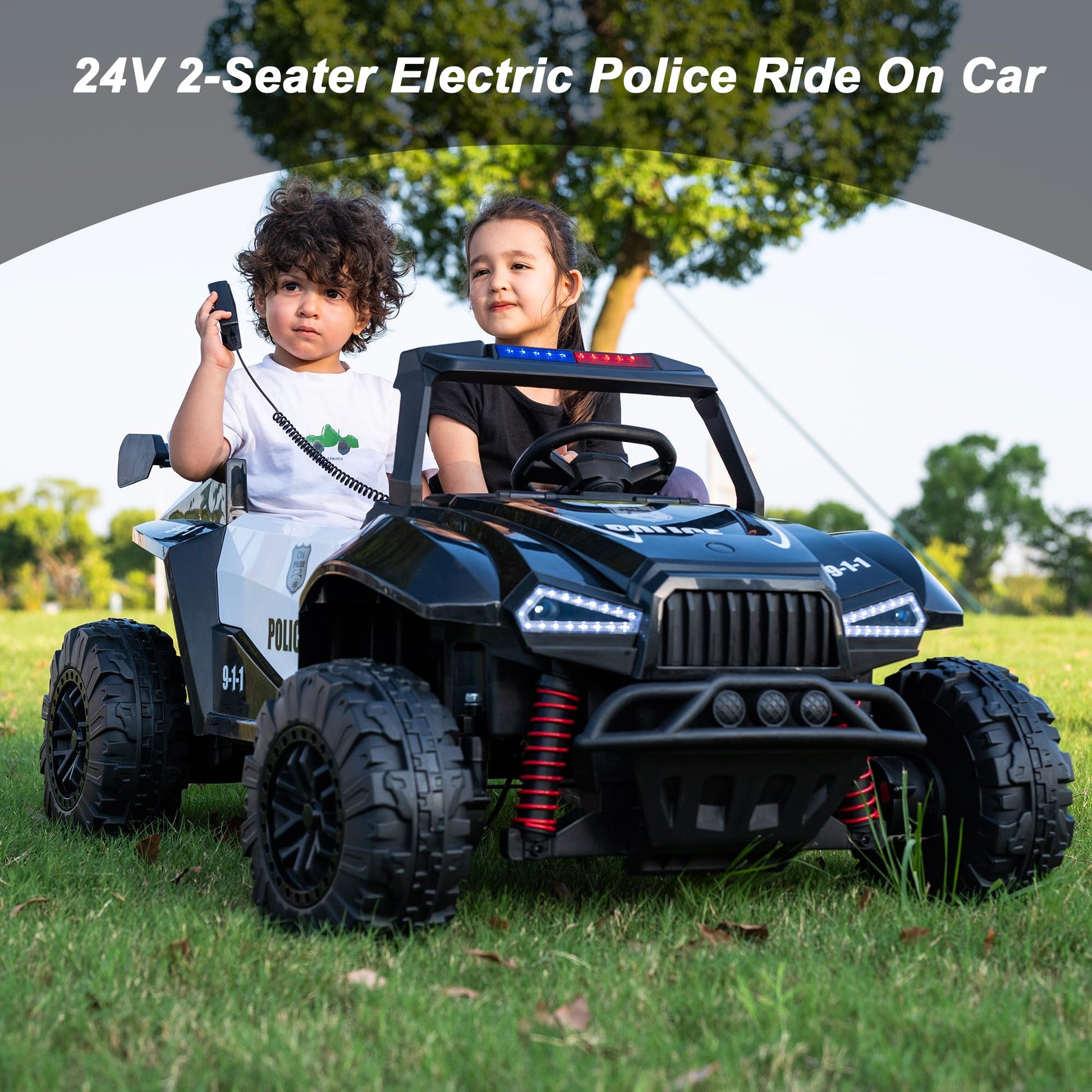 24V 2-Seater Kids Ride On Car Electric Off-Road UTV Side by Side with 200W*2 Powered Wheel Electric Vehicle with Remote Control, Bluetooth, LED Light Gift for Boys and Girls Black
