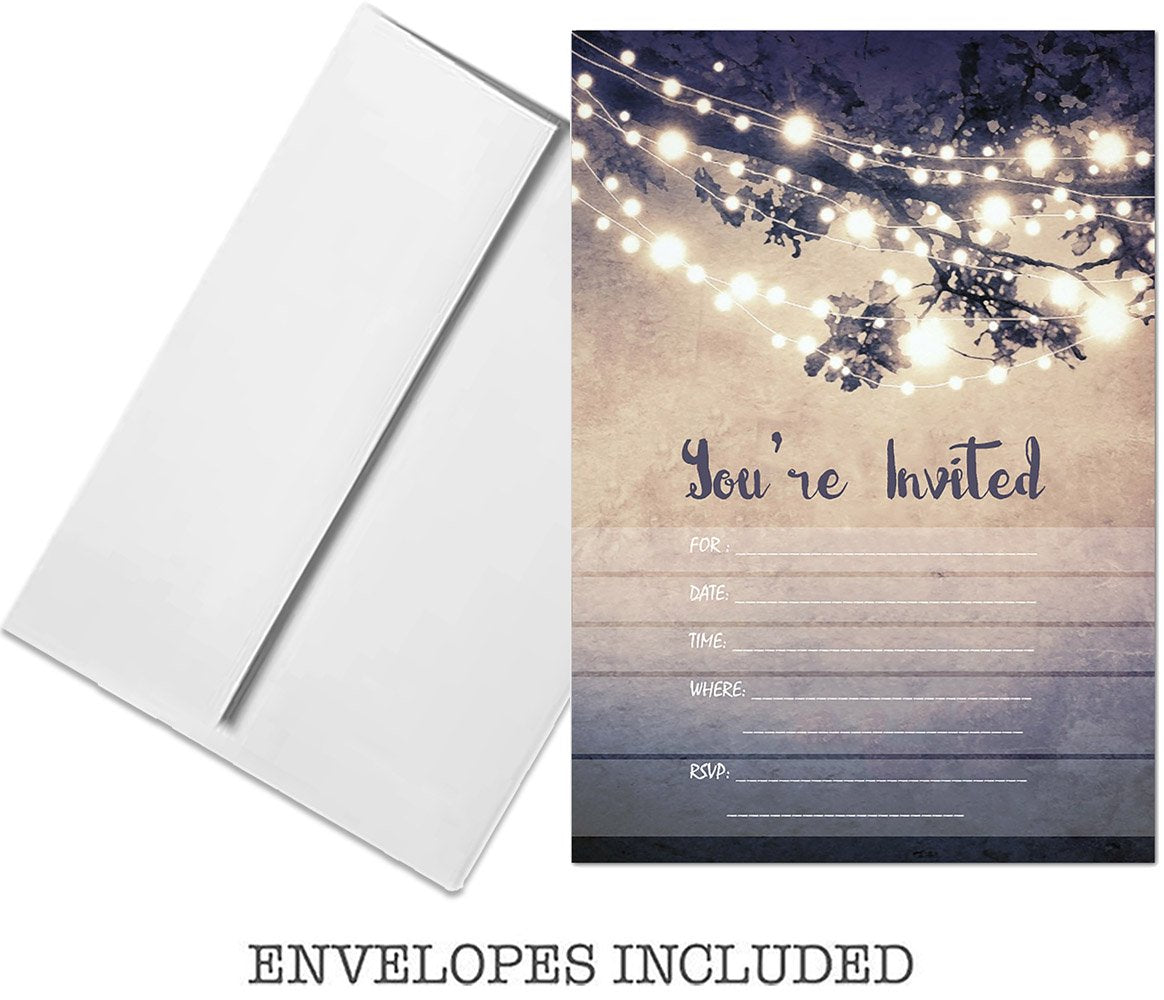 25 Outdoor Lights You're Invited Party Invitations 5x7 Card Stock with Envelopes