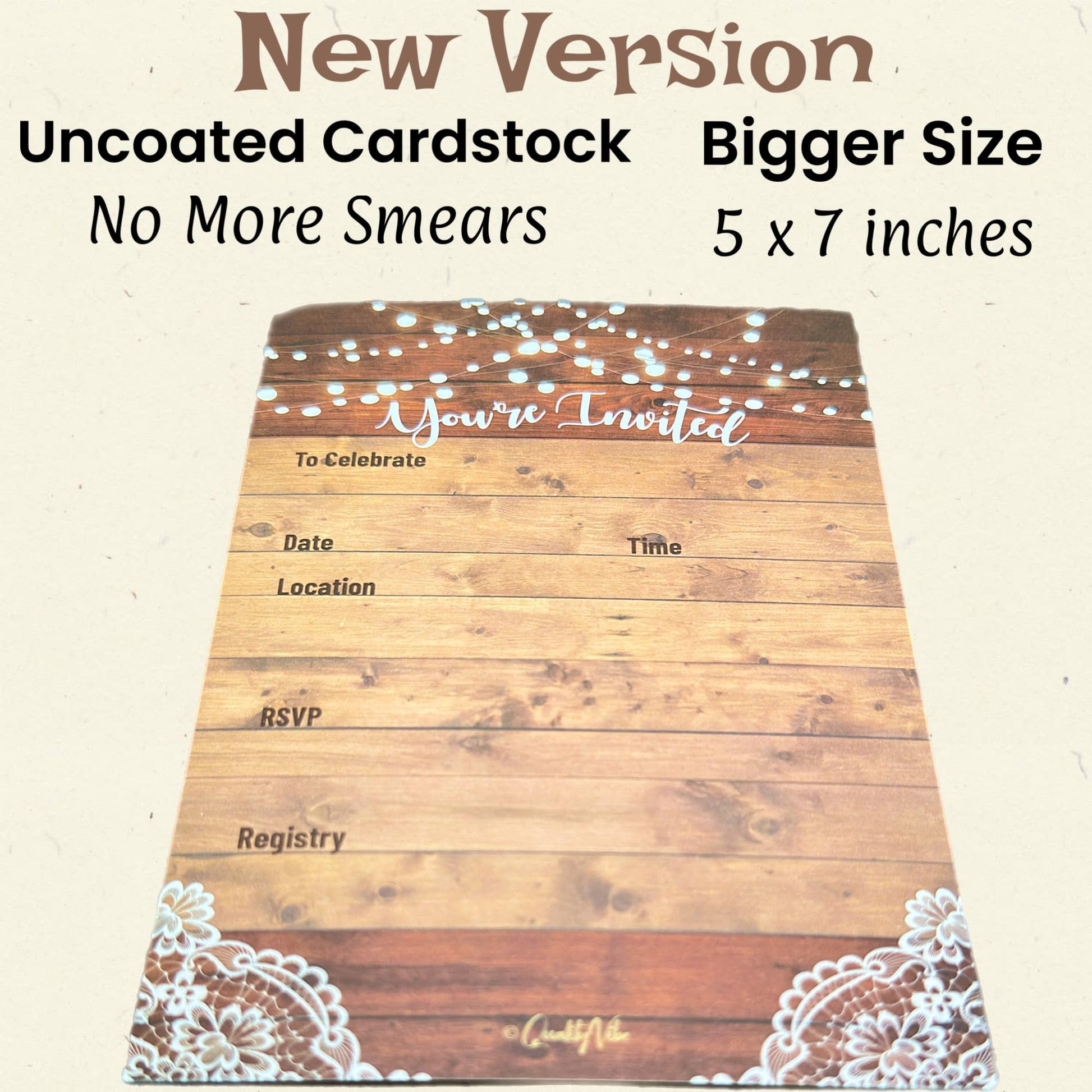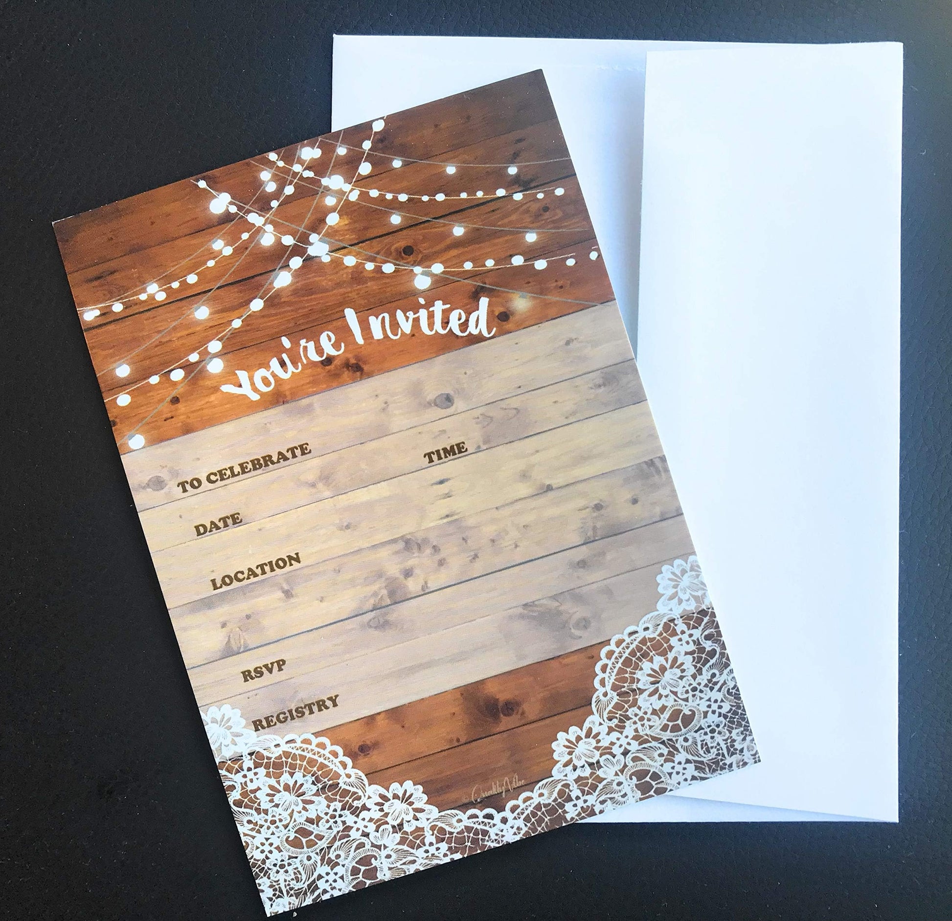 25 rustic invitations & 25 envelopes for wedding, bridal shower, birthdays, engagements, bachelorettes This barn rustic invite style is also great for housewarming, retirement & rehersal parties.