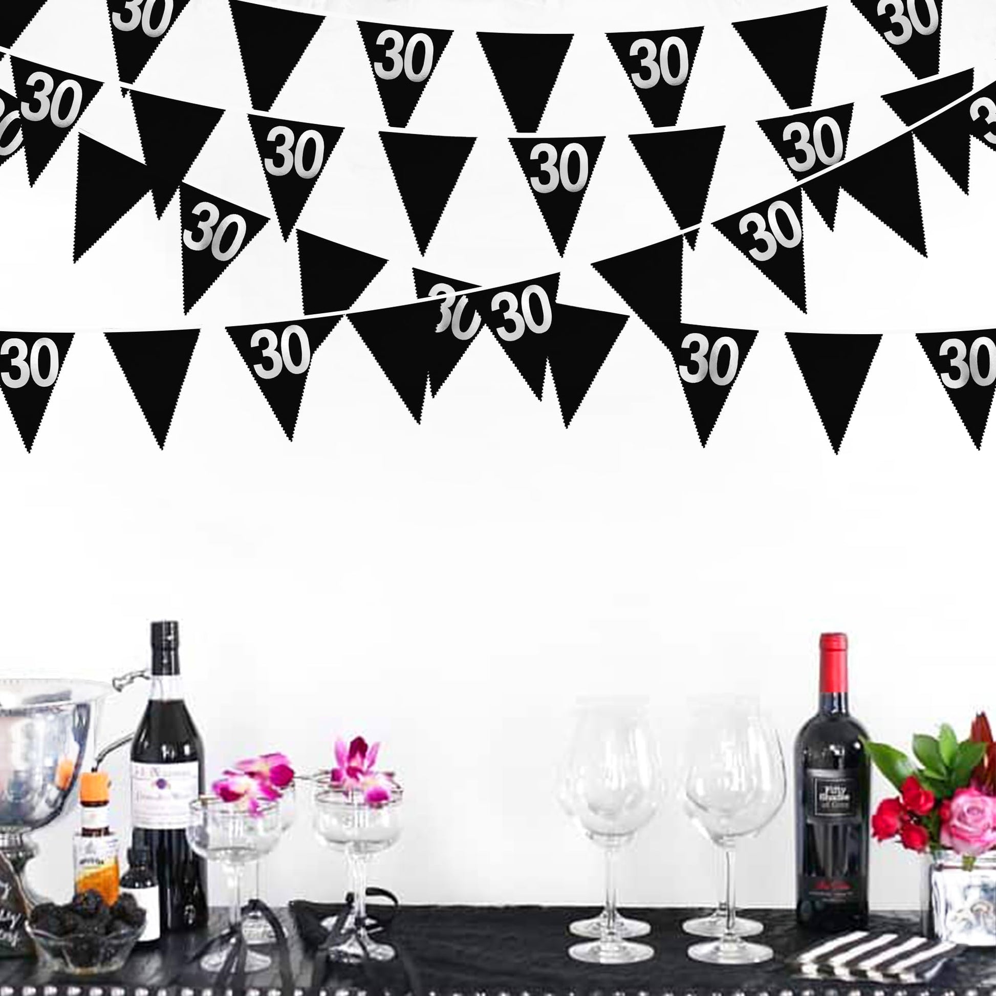 - 30th Birthday Party Choice: These black and silver 30th birthday triangle flags are good ideal for any kind of celebration, party, festival, events or other occasion. Like 30th birthday party, 30th birthday decorations, 30th birthday party supplies, dirty thirty birthday decorations, beers and cheers to 30 years party, 30 and fabulous birthday decorations for women, im 30 bitchs party, dirty 30 birthday decorations, 30th anniversary.
