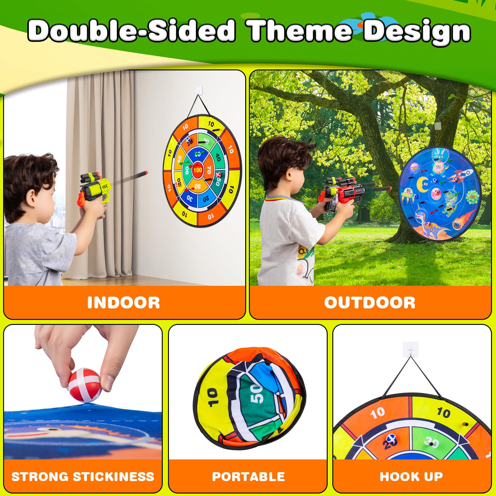 29" Dart Board for Kids - Double Sided Shooting Games with 2 Toy Guns, 6 Sticky Balls and Darts, Indoor Outdoor Party Sport Toys for 3 4 5 6 7 8 Years Old Boys Girls