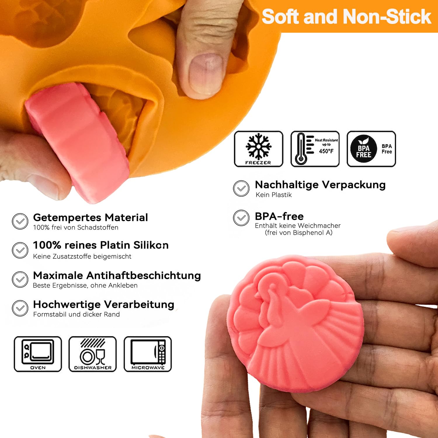 - 【High quality Material】: These Thanksgiving pumpkin mold for chocolate are made of food grade silicone,environmentally friendly,durable, non- stick, flexible,heat resistant. Easy & safe to use in microwave, oven, freezer, and dishwasher. with Heat capacity of -104℉ to 446℉(-40℃ to 230℃).