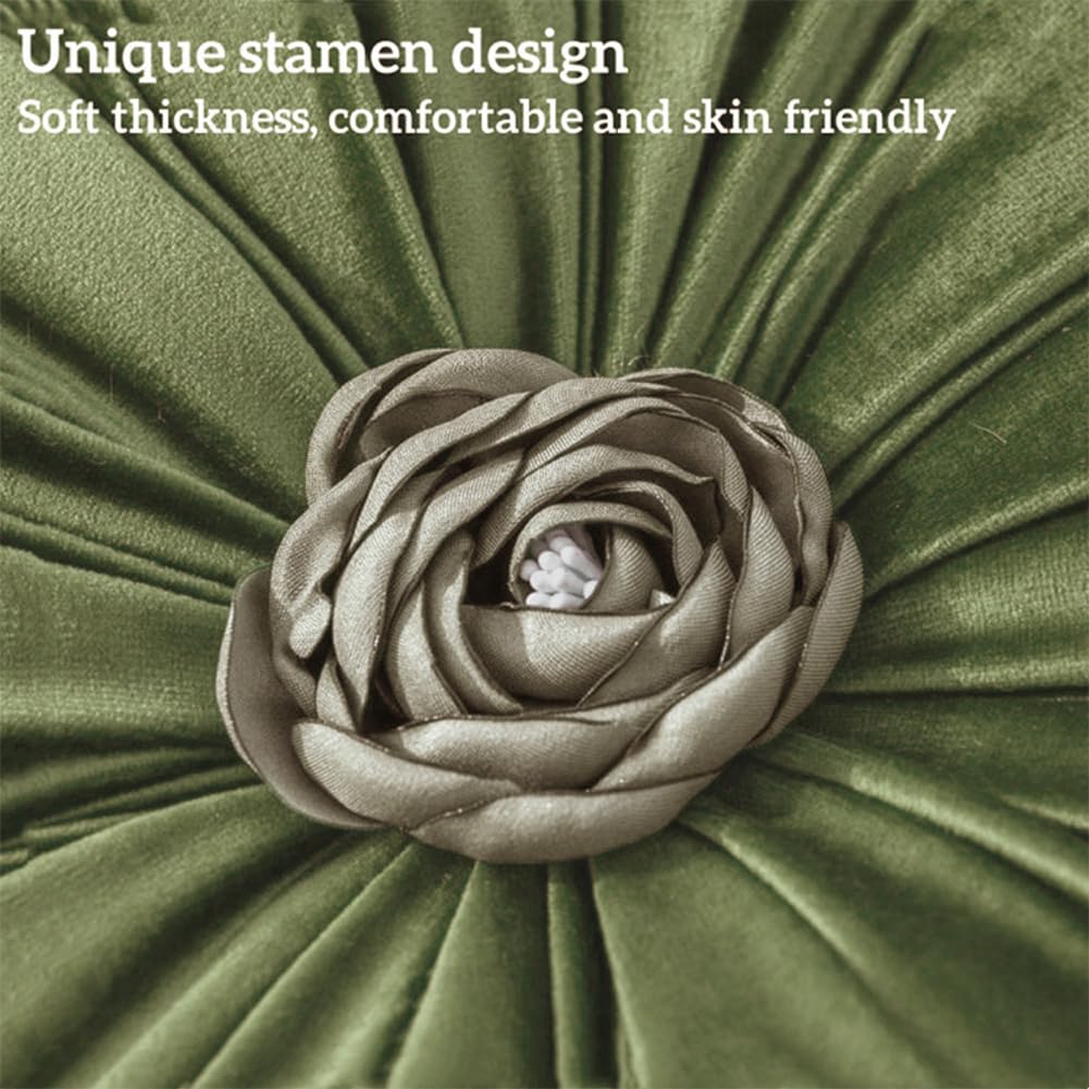 2Pcs Flower Pillow Cushion Round Aesthetics Decorative Throw Pillow 15.7" Velvet Flower Shaped Pillow for Bed Sofa Couch Vanity Chair (Green)
