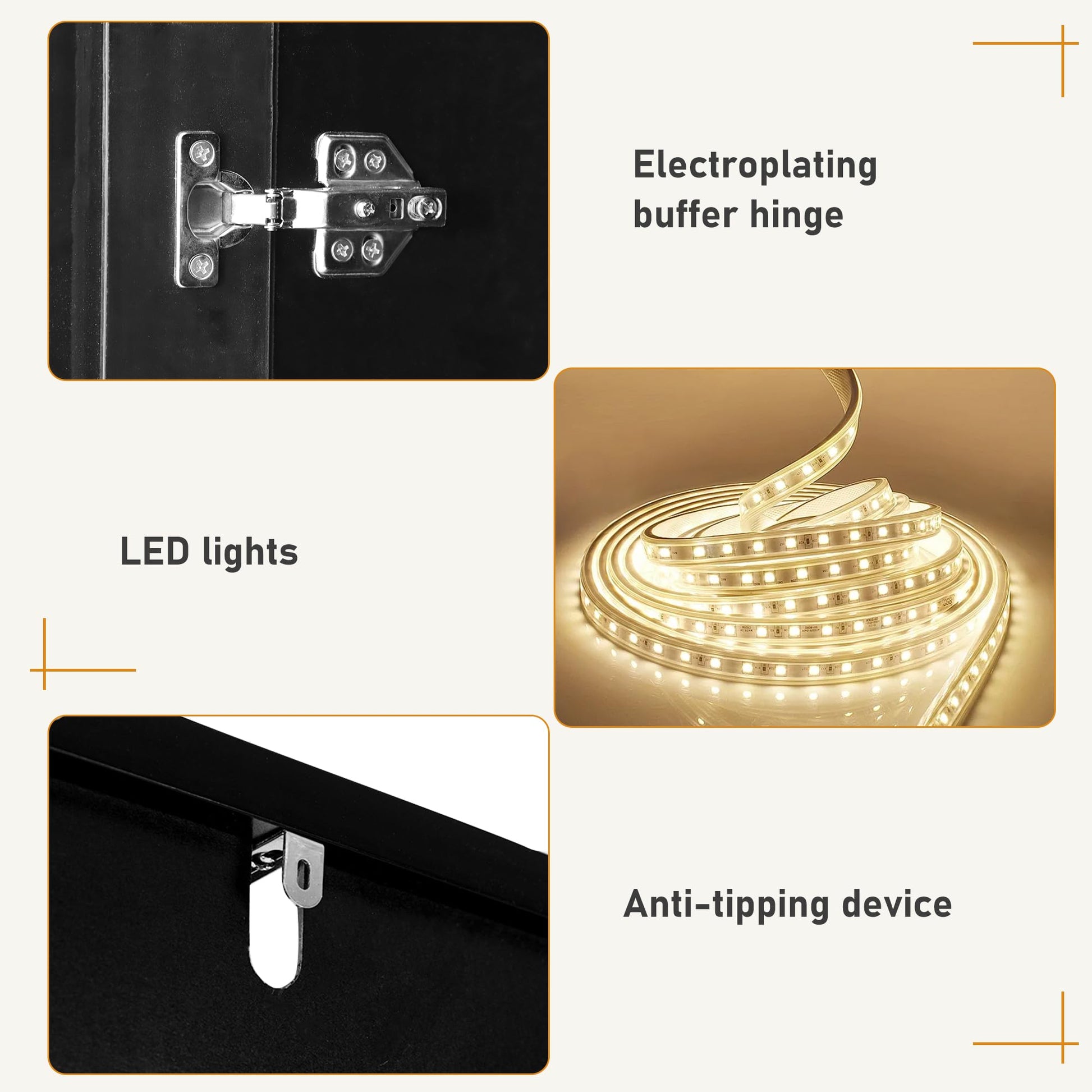- Our details: Buffer hinges can reduce the impact of doors, and the door gap can be adjusted as needed. The drawer uses 3-section slide rails for smoother operation. The entire wardrobe is made of engineered wood, which is stable and reliable.