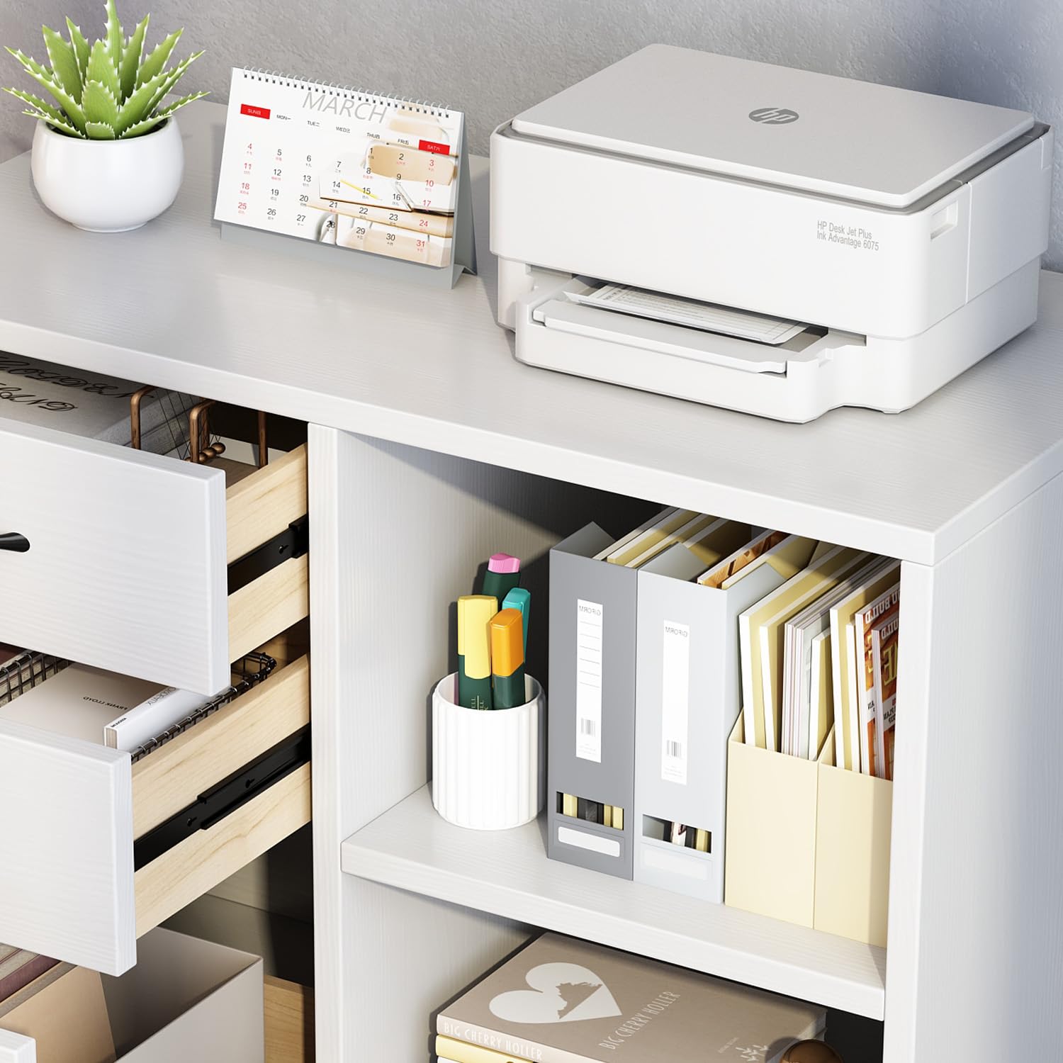 - Office Pedestal Files storage cabinetMultifunctional Storage Cabinet:The stylish storage cabinet with open storage space and file drawers can serve your various purposes. You can use it in the office to organizer office machines, paper, file and supplies, as a printer stand,It fully extends for easy file access. be used at home to organize the clutter in your room,can also be placed in the entryway to store keys, hats,scarves,Headphones.
