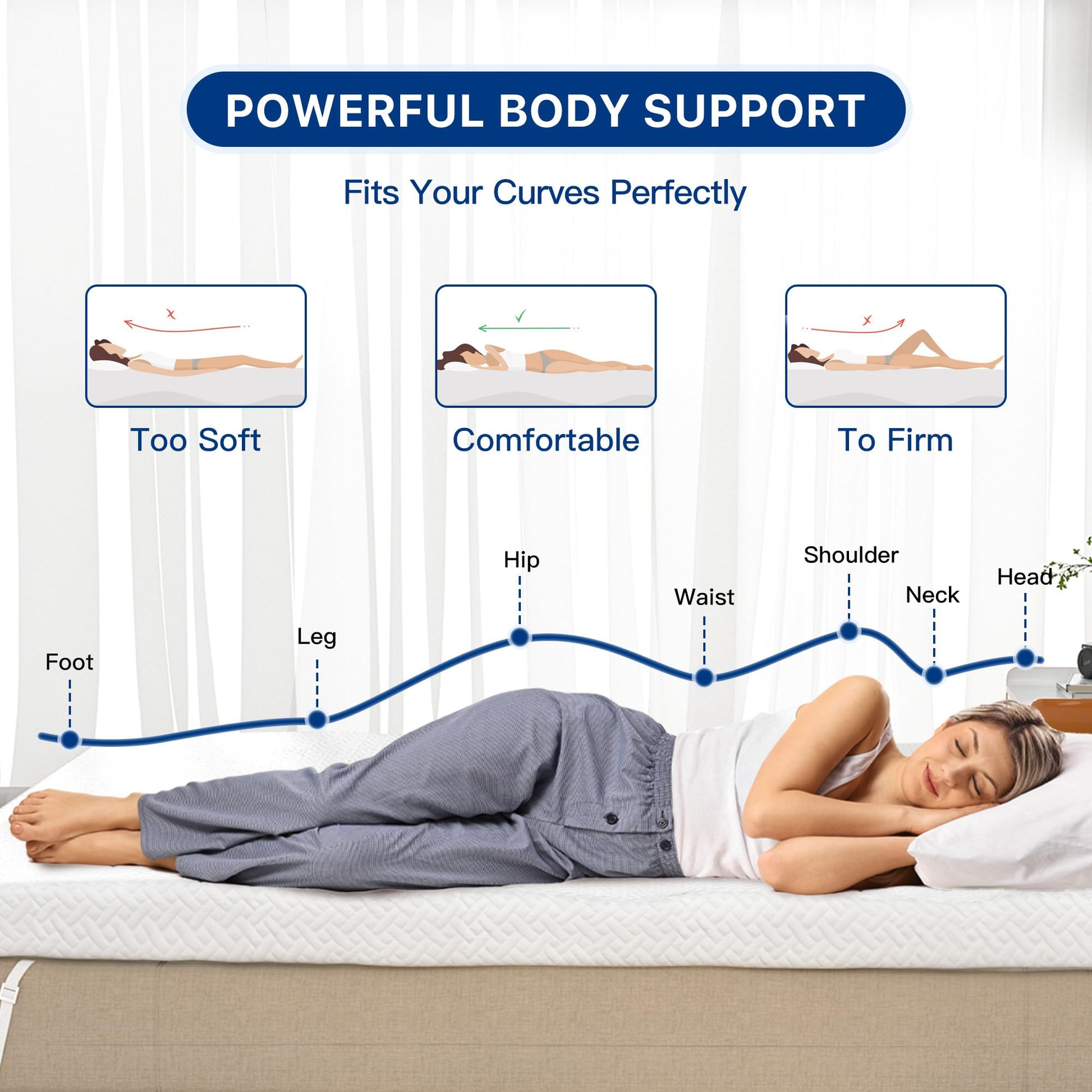 - Certified Quality and Washable:Aivermeil bed toppers are CERTIPUR-US certified, ensuring low odor, high-quality materials, excellent performance, and durability. Each memory foam has undergone a rigorous pressure rebound test to ensure long-term durability without collapsing.The mattress cover should be machine washed in a gentle cycle with cold water and tumble dry on low for maintenance.