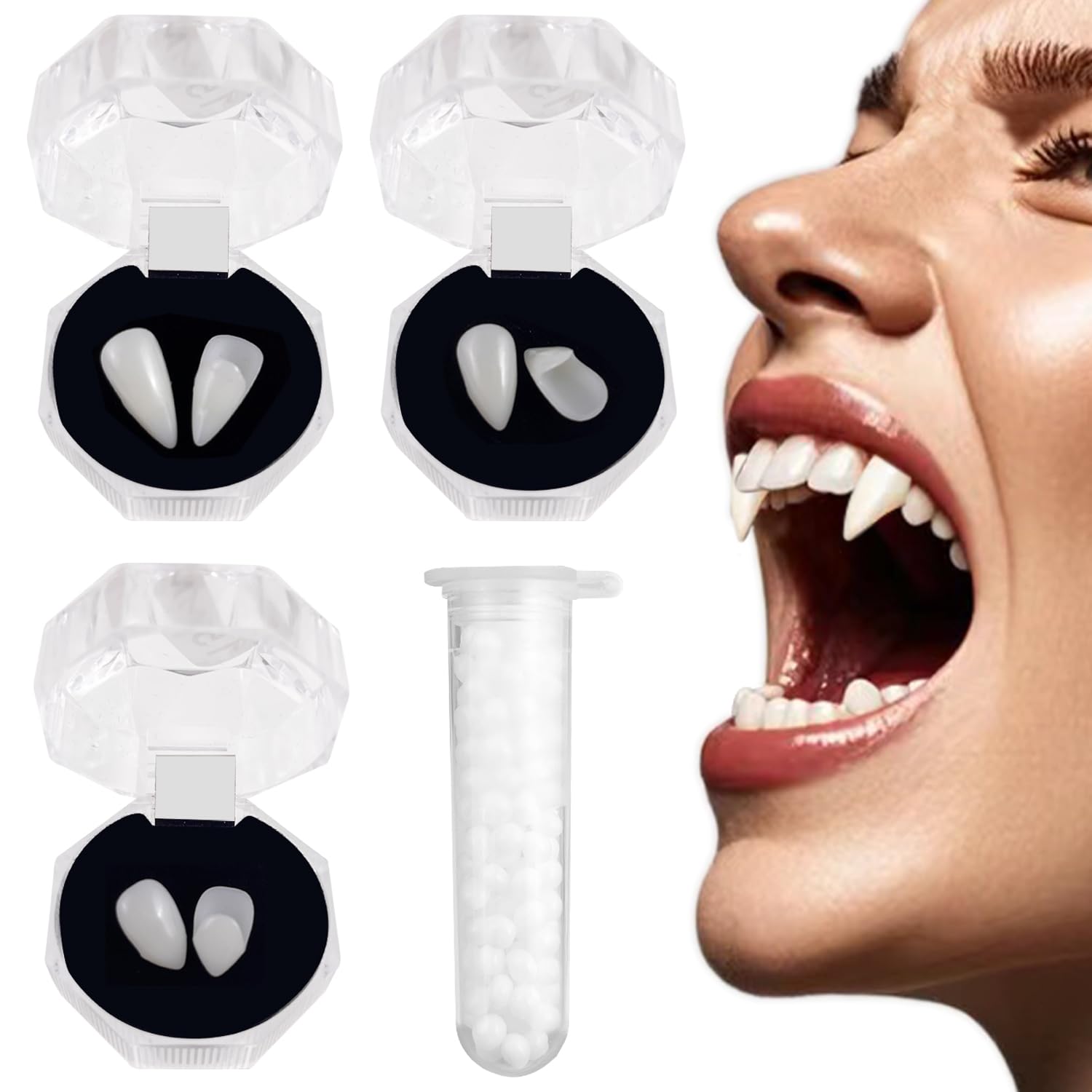 3 Pairs Halloween Vampire dentures and fangs - realistic vampire fangs dentures, 3 sizes with adhesive, 13mm, 15mm, and 17mm, Halloween role-playing props, party gifts, makeup ball accessories gifts