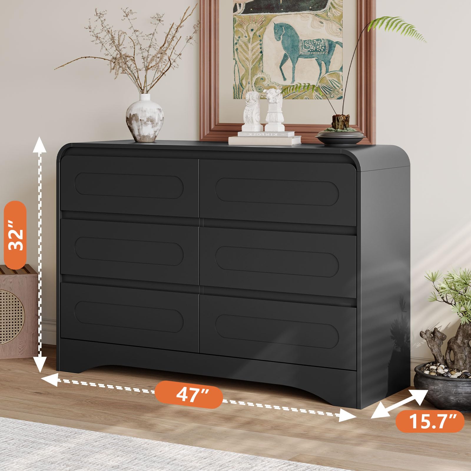 - Wide 6 Drawer Dresser Size: This beautifully crafted modern dresser features a spacious (47"W x 15.7"D x 32"H), making it the perfect dresser for bedroom or living space. The wide 6-drawer dresser design maximizes storage without compromising on style, while its weathered finish adds authentic rustic charm to any interior