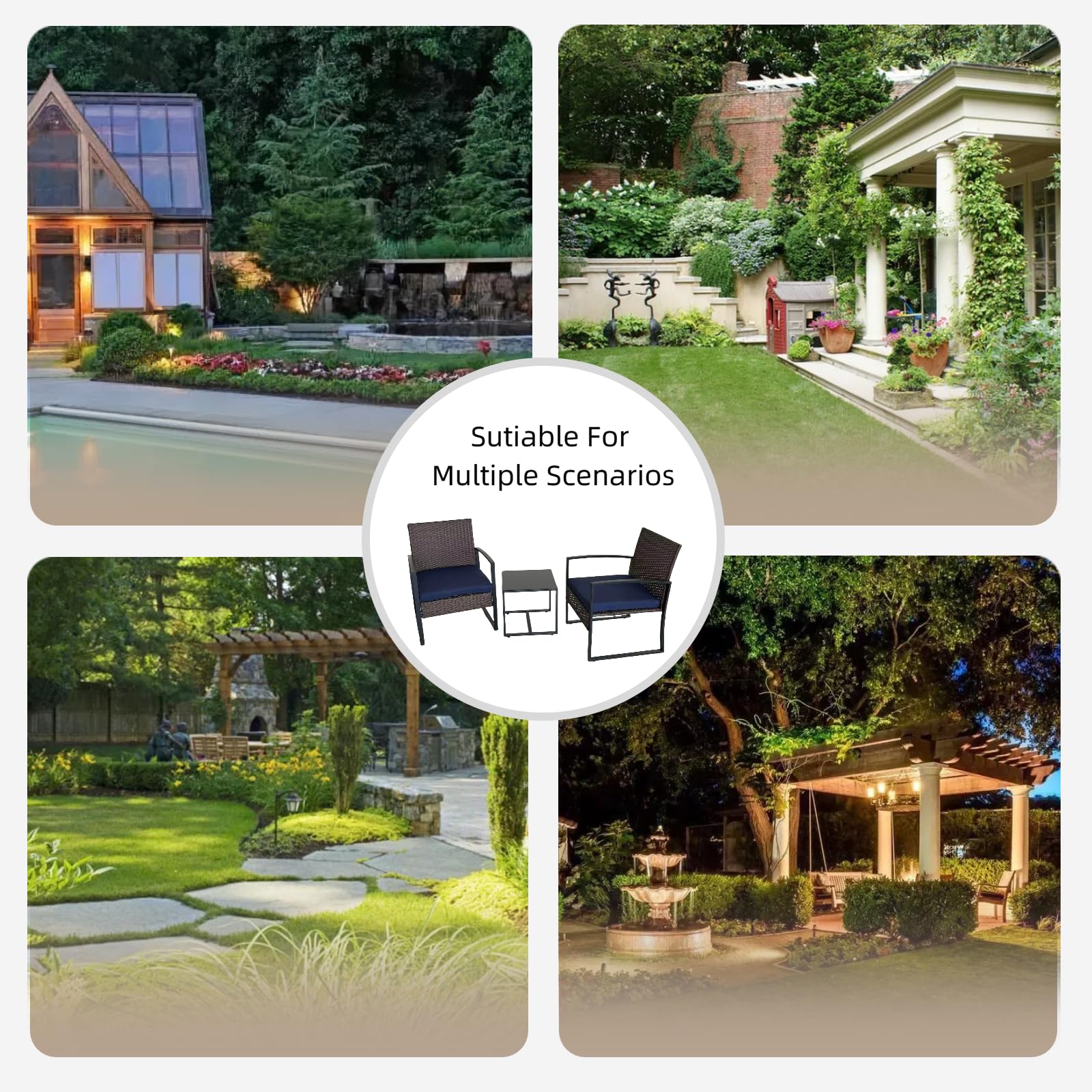 - 【STURDY & WEATHER-READY 3 PIECE PATIO SET】 Built for lasting outdoor enjoyment! Features a fully enclosed rust-proof powder-coated steel frame and high-strength UV-resistant PE wicker. This design eliminates loose weaving worries, ensuring stability and supporting up to 250 lbs per chair. Your outdoor patio set is ready for sun, rain, and seasons of use