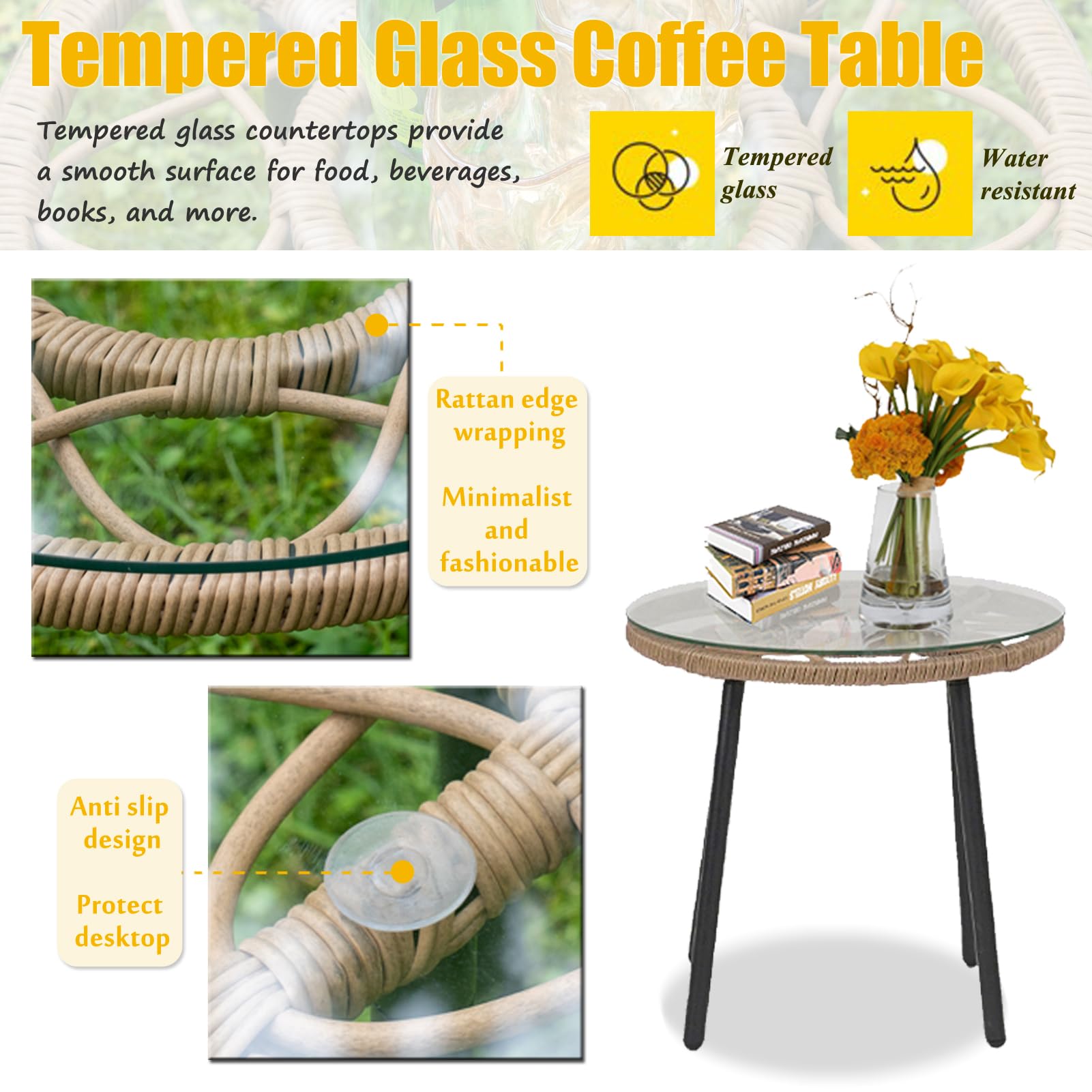 - CONVENIENT SIDE TABLE: This unique set includes a matching circular accent table to place small decor, snacks, or beverages as you lounge