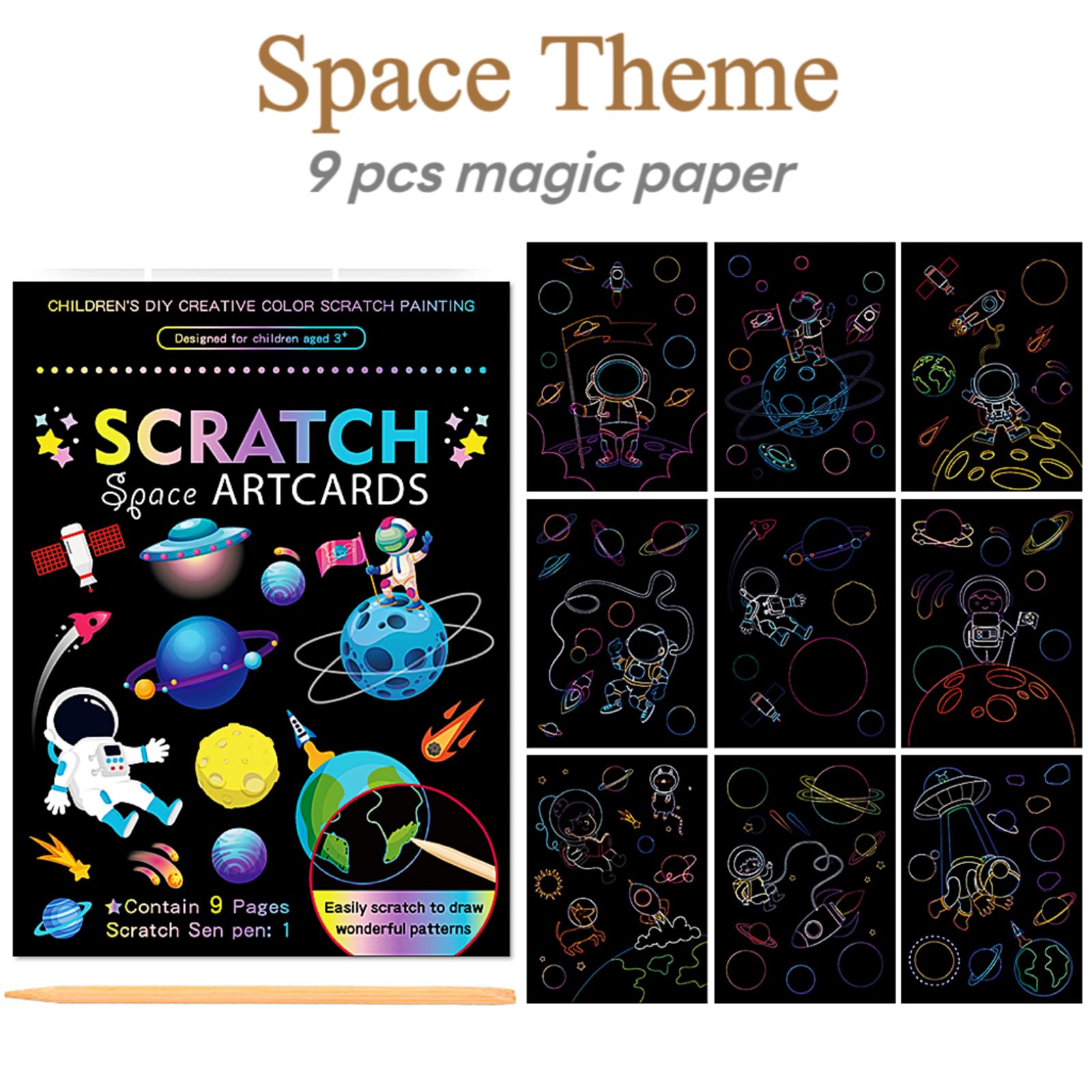 - Package includes 27 high-quality scratch paper sheets in 3 unique themes: Ocean, Space, and Animal. 9 sheets per theme, providing a variety of designs to explore