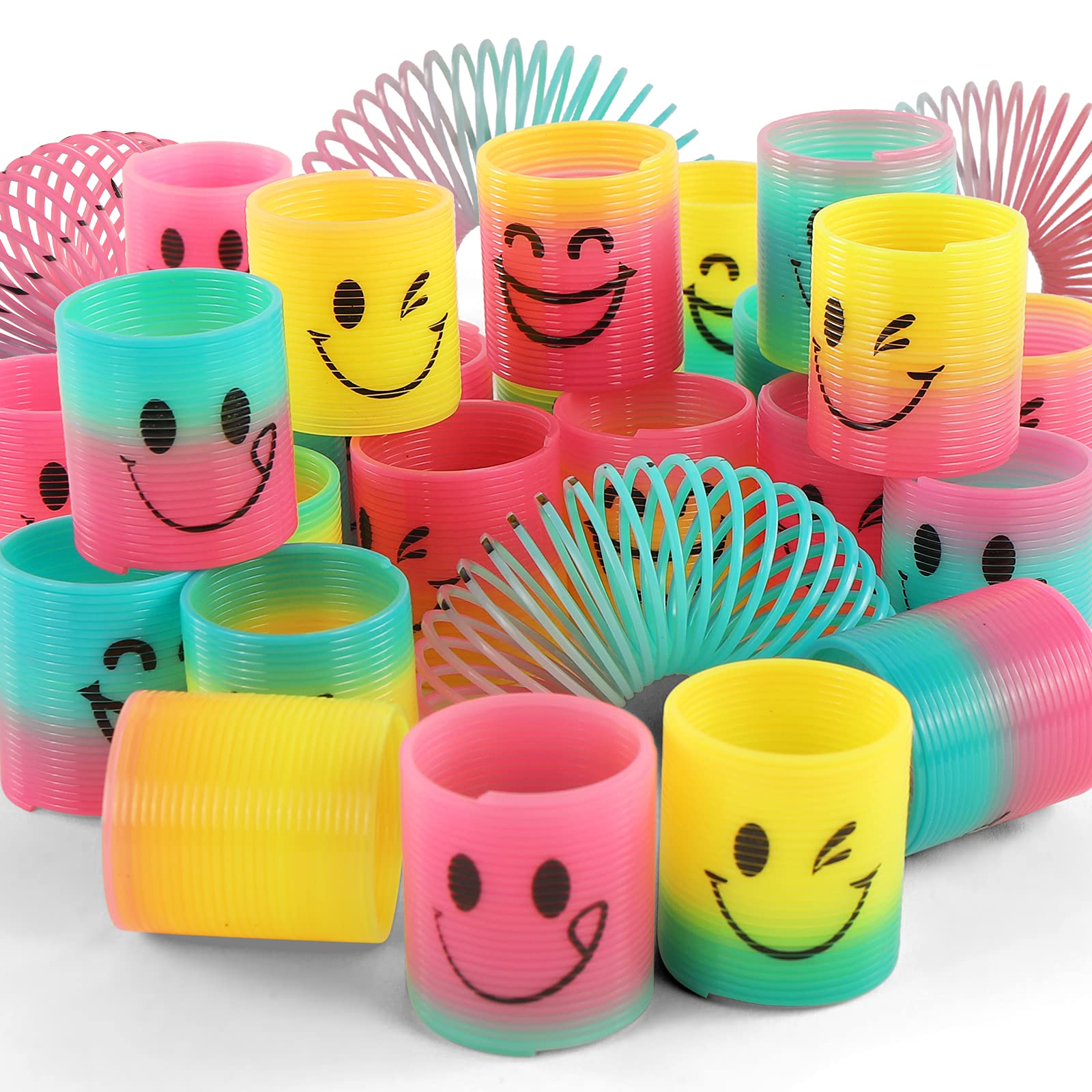 - Value Pack:The Pack came with 30 pcs springs .It is printed on with different smiley them and has bright rainbow colors,bring extra fun.