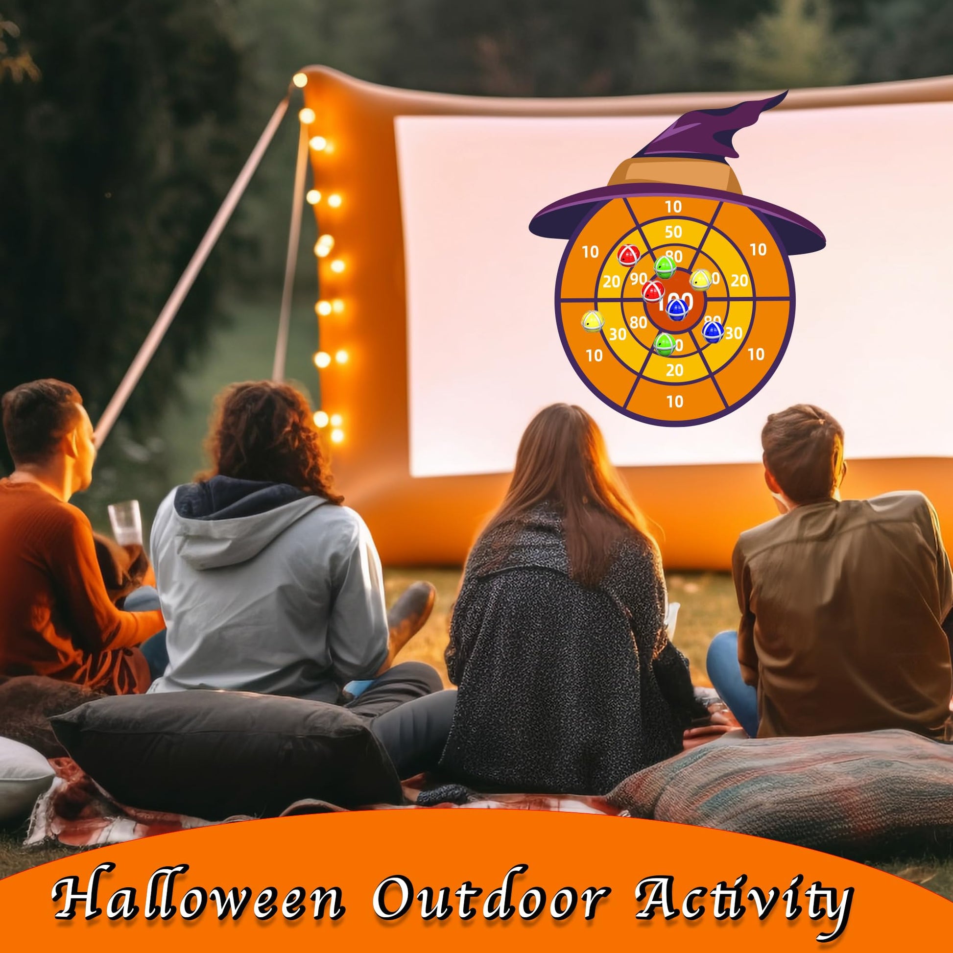 - 【HALLOWEEN GIFTS FOR BOYS GIRLS】30in Halloween witch hat dartboard (with hook), made of high quality soft fabric, durable, and comes with 12 plastic sticky balls with strong stickiness, can be firmly attached to the dart board. Halloween toys dart board game for kids 4 5 6 7 8 9 10 Year Old, indoor or Outdoor Toys for Kids Age 3-10.